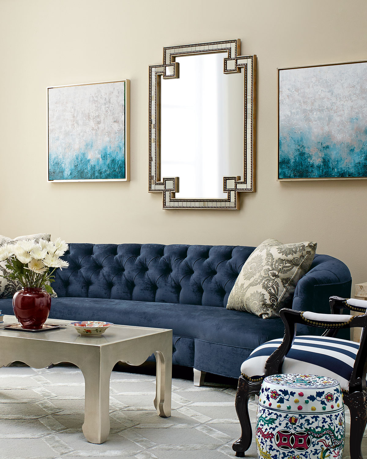 Шикарное зеркало в гламурном стиле. Может быть подвешено как вертикально, так и горизонтально. Рама зеркала украшена в ручную маленькими бисеринками, что придает ему особый шарм. Представлено в HPDECOR в двух размерах.