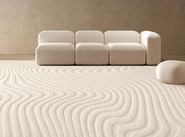 Узоры на ворсе, выполненные в виде симметричных волн, придают ковру характер и изысканность. Эти волны создают эффект движения и легкости, добавляя динамизма и элегантности в помещение. Каждая волна аккуратно выстрижена на ворсе и акцентирует внимание на шелковистой поверхности ковра.