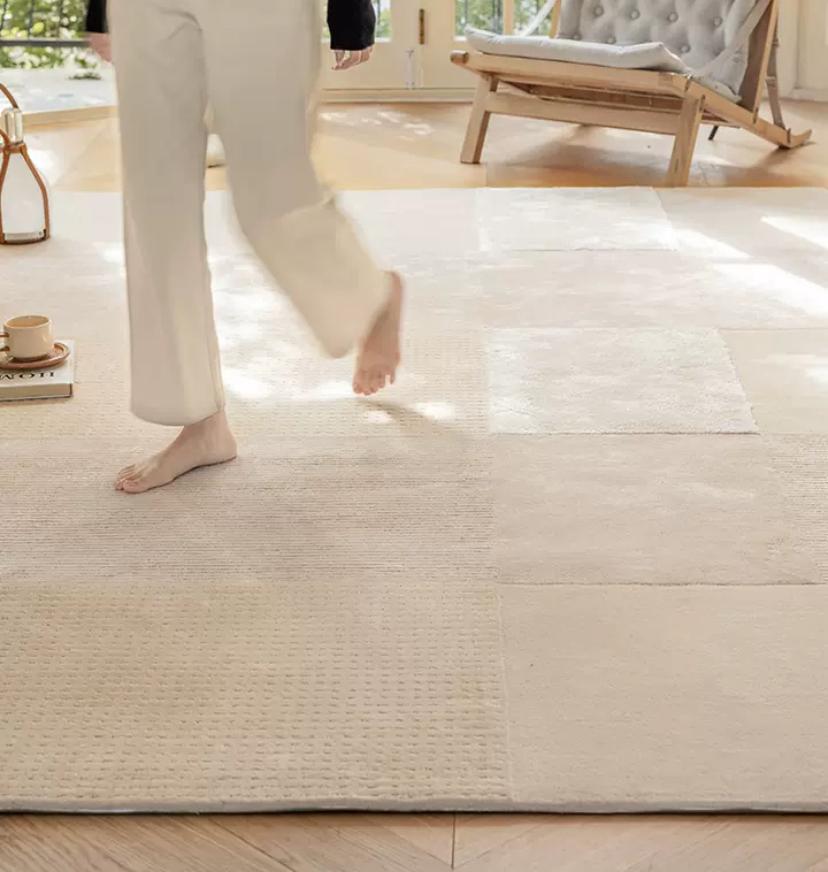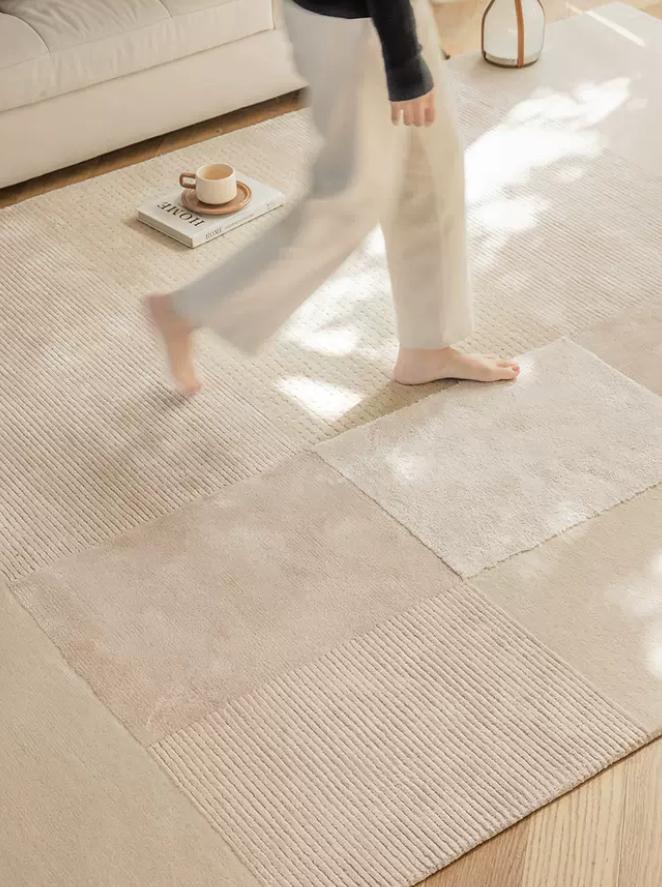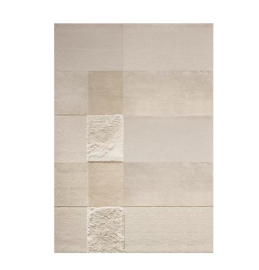 Прямоугольные фигуры, выполненные в том же нежном бежевом оттенке, создают интересные геометрические узоры на поверхности ковра. Они придают ему изящность и оригинальность, создавая игру света и тени при каждом шаге. Фигуры, аккуратно расположенные на покрытии, создают ощущение гармонии и симметрии, дополняя общую эстетику и роскошь ковра.