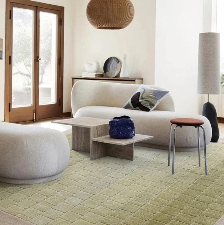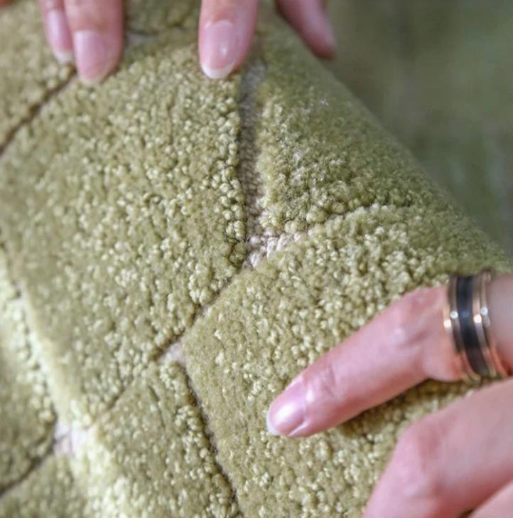 Ковер из новозеландской шерсти и полиэстера, прошитыми вручную, окрашенный в весенний цвет с характерным градиентом от края к центру, является отличным акцентным элементом для любого интерьера. Он сочетает в себе натуральную красоту шерсти с прочностью полиэстера и вместе создает уютную и стильную атмосферу в помещении.