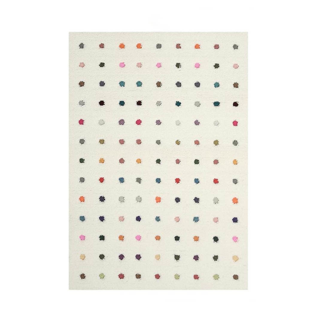 Разноцветные вкрапления, которые расположены симметрично на поверхности ковра, добавляют яркости и радости в общую композицию. Вкрапления выполнены в различных оттенках: синий, зеленый, красный, желтый, оранжевый и т.д. Благодаря этому, ковер становится интересным и динамичным элементом декора.