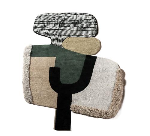 Форма ковра дефинированно не правильная, что сразу бросается в глаза. Он не ограничен привычными квадратами или прямоугольниками, а словно имеет собственную свободную волю, обтекаемую и загадочную. Блики и изгибы создают впечатление движения, словно ковер органически вырос в этом пространстве, подстраиваясь под каждый угол, каждую грань.