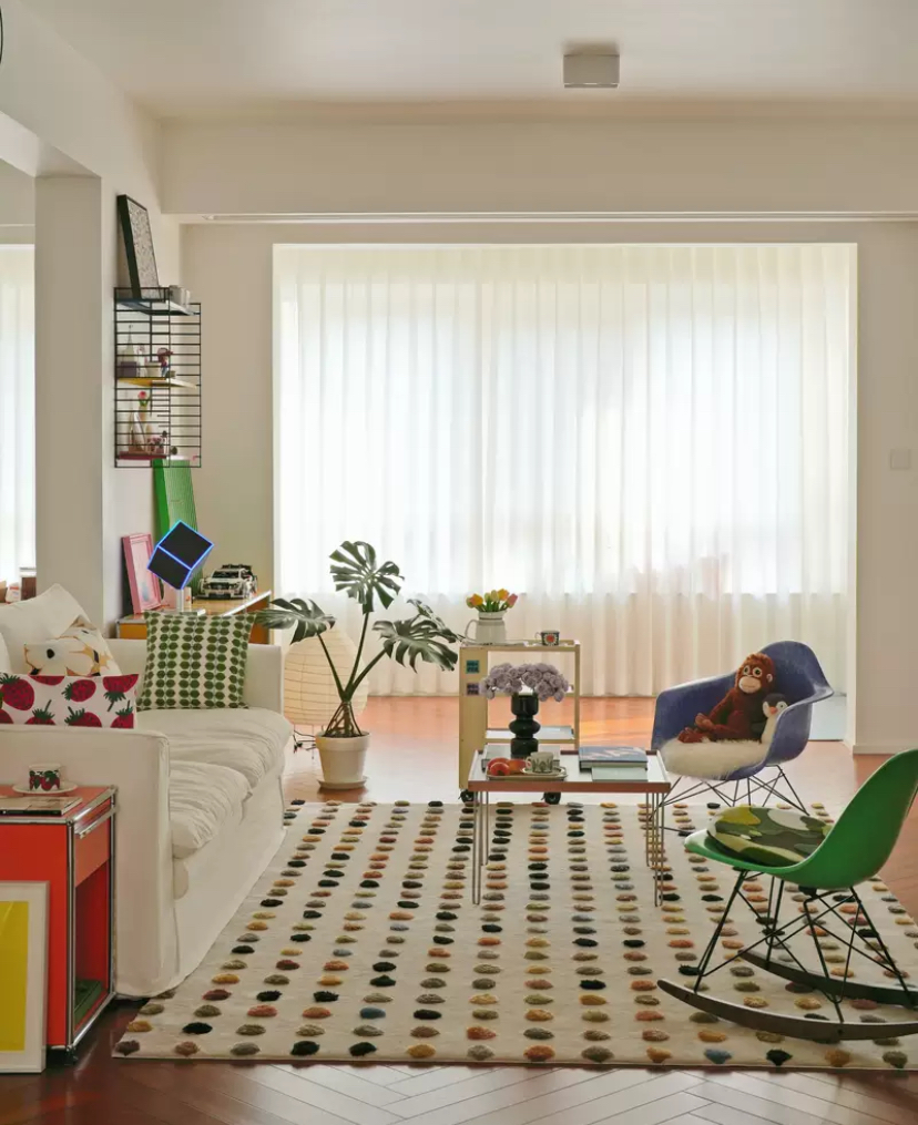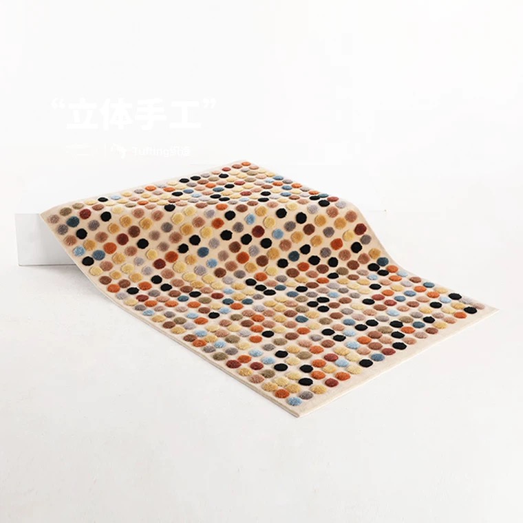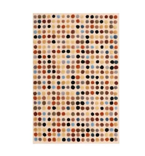 Молочный цвет ковра придает ему нежность и позволяет легко сочетаться с различными интерьерами. Кружочки на его поверхности добавляют яркости и разнообразия, создавая эффектный визуальный акцент в помещении.