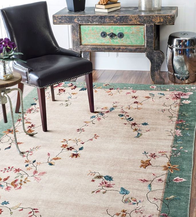 Все эти детали, будь то нежный бежевый фон, небесно-голубое обрамление или пестрые цветочные узоры, гармонично сочетаются друг с другом, создавая единую композицию, которая приносит в дом не только комфорт и уют, но и легкую элегантность, подчеркивая тонкий вкус хозяев дома. Этот ковер своим видом приглашает остановиться, прикоснуться к его мягкой поверхности, почувствовать под пальцами легкую текстуру и насладиться эстетическим наслаждением, которое он несет.