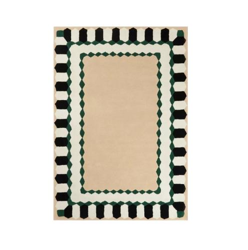 В целом, этот прямоугольный ковёр из шерсти и акрила с зелёным орнаментом по краям — это не просто элемент декора, а настоящая находка для тех, кто ценит комфорт, качество и стиль в своём доме.
