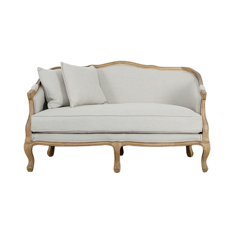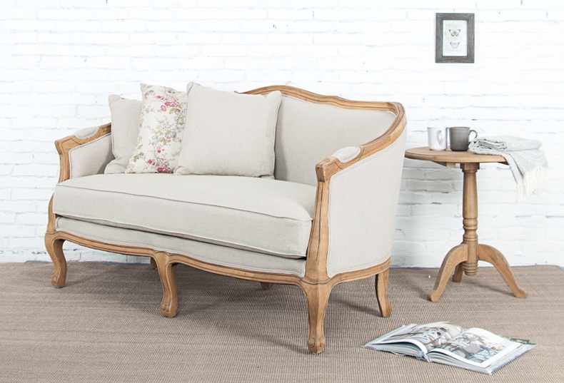 Этот двухместный диван, выполненный во французском стиле просто восхитителен! Гармония пропорций, плавность силуэта, цвет, отделка – всё в нём совершенно. Деревянные грациозные ножки из массива дуба ножки искусственно состарены и выкрашены в цвет обивки. Обивка же дивана выполнена из натурального льна-вы обязательно полюбите это украшение вашего дома. Диван создан для стиля прованс , он будет играть центральную роль в любом интерьере.