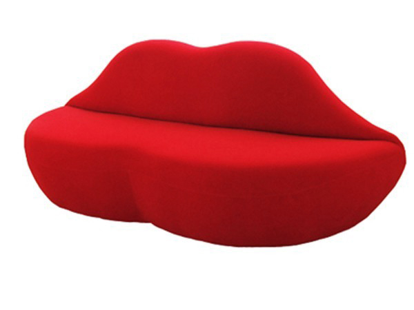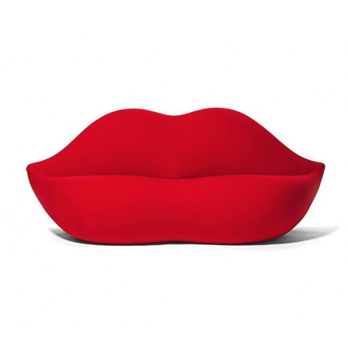 Ярко-алый трехместный диван, очертаниями повторяющий форму губ. Такой оригинальный диван по заслугам станет главной изюминкой комнаты!