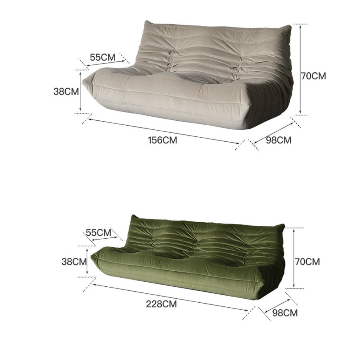 диван: 83*98*70 см , 156*98*70 см, 228*98*70 см