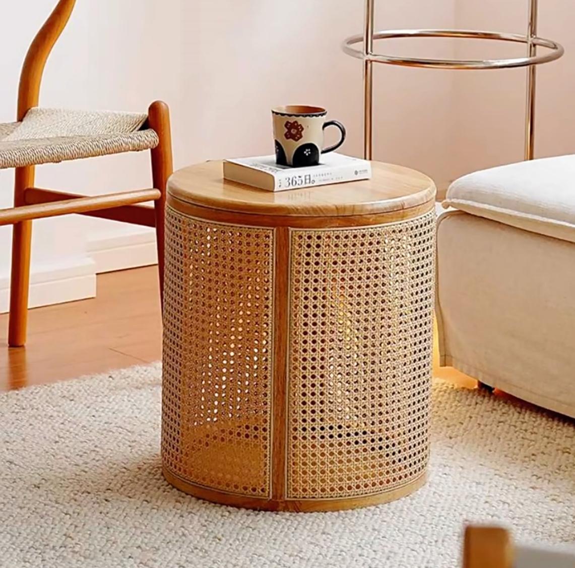 Особенность этого столика заключается в его функциональности. Столешница не прикреплена намертво к основанию, а легко снимается. Это открывает доступ к внутреннему пространству столика, превращая его в небольшое хранилище. Здесь можно разместить пледы, книги, журналы или любые другие вещи, которые вы хотите держать под рукой, но не желаете выставлять на всеобщее обозрение.