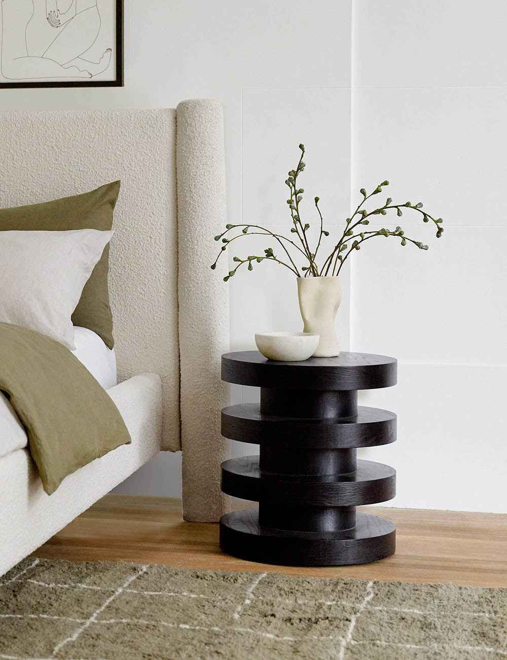 Добавьте нотку тела свое жилое пространство с помощью деревянного приставного столика, который сочетает в себе скульптурный силуэт и естественную текстуру дуба. Конструкция этого столика со сложенными цилиндрами создает динамичный вид и ловко сочетается с диваном или акцентным креслом в современном стиле.