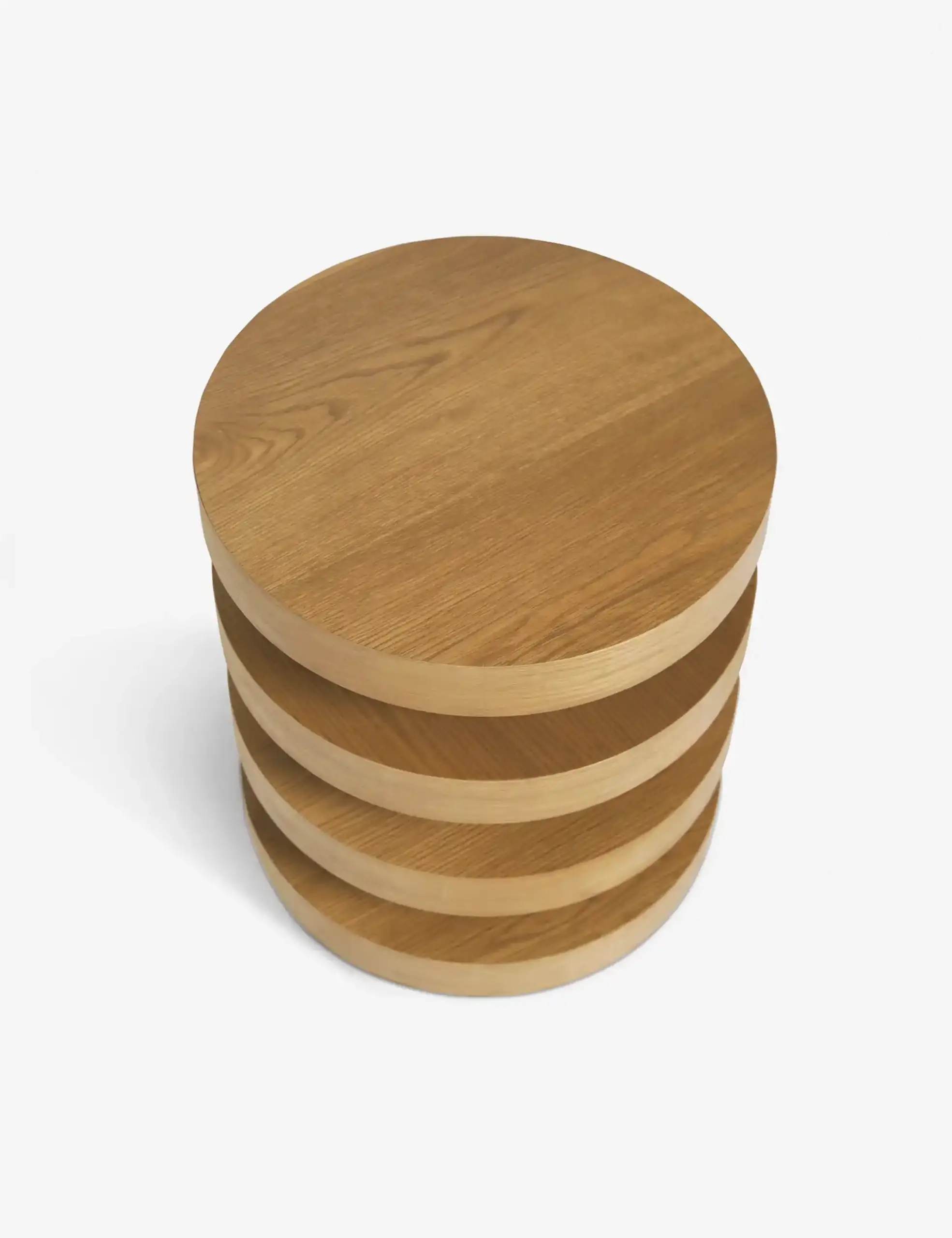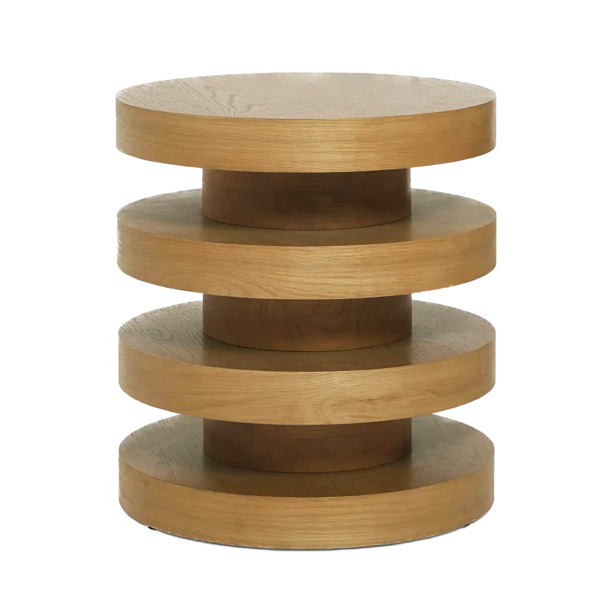 Добавьте нотку тела свое жилое пространство с помощью деревянного приставного столика, который сочетает в себе скульптурный силуэт и естественную текстуру дуба. Конструкция этого столика со сложенными цилиндрами создает динамичный вид и ловко сочетается с диваном или акцентным креслом в современном стиле.