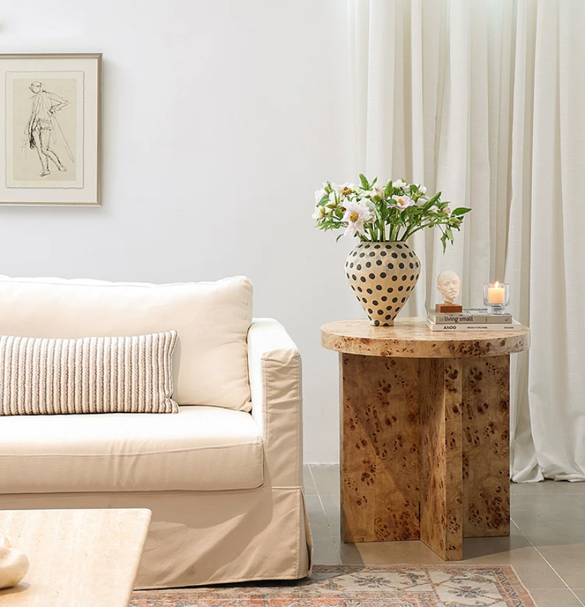 Столик Burl, небольшой, но невероятно изысканный столик, притягивающий к себе взгляды своей утончённой простотой и элегантностью. Этот столик — идеальный пример того, как можно гармонично сочетать функциональность и эстетику в одном предмете мебели.