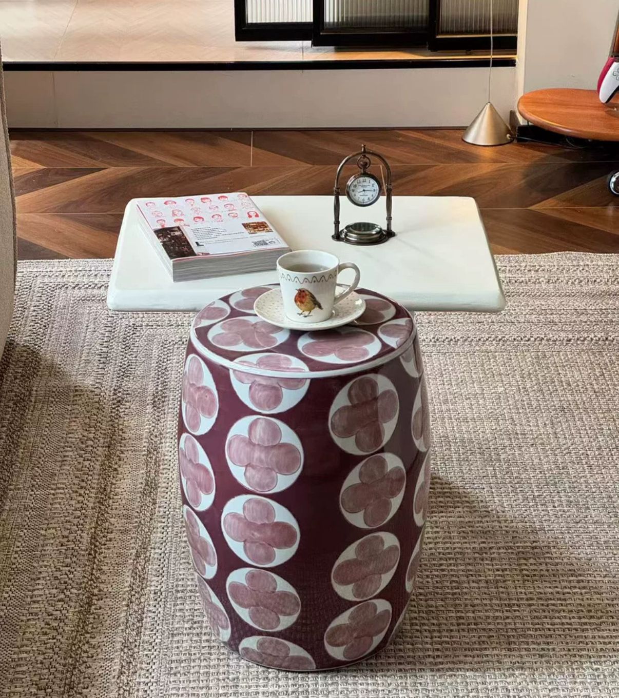 Его форма – обычно низкий, приземистый, с плавными изгибами ножек, напоминает о традициях китайской мебели. Керамика, из которой он изготовлен, тщательно отполирована и покрыта глазурью, придающей ей шелковистый блеск.