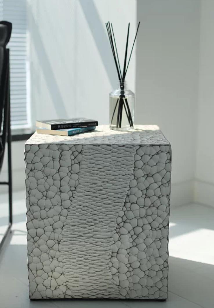 кофейный столик Destoni , словно высеченный из цельного куска дерева. Его строгая кубическая форма с четкими, ровными краями излучает современный минимализм и функциональность. Однако, именно поверхность этого столика, тщательно обработанная и фактурная, придает ему неповторимый характер и особую теплоту.