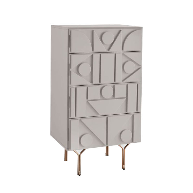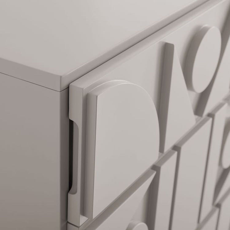 Комод нашей нежной коллекции Melanie идеально подойдет для современного минималистического стиля любой спальни и подчеркнет женственное начало ее обладательницы. Обладает приятным пастельным пудрово-серым оттенком и приятным на ощупь материалом.
