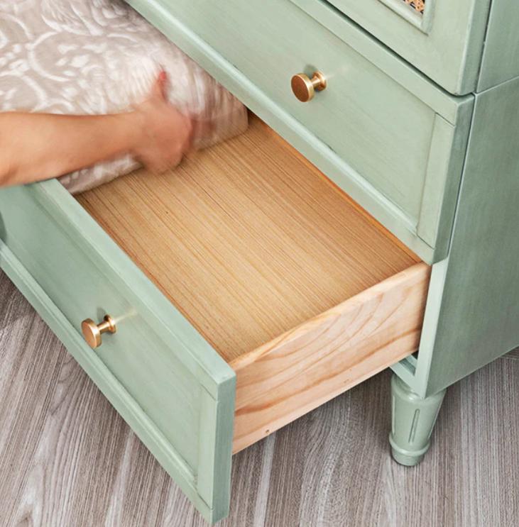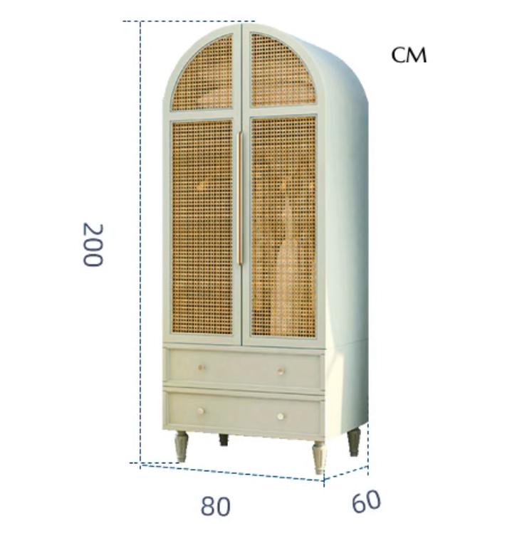 Материал: массив американского каучука, двери из ротанга с мягким закрыванием, плетеные вручную из Калимантана. Ручка из меди с позолотой.