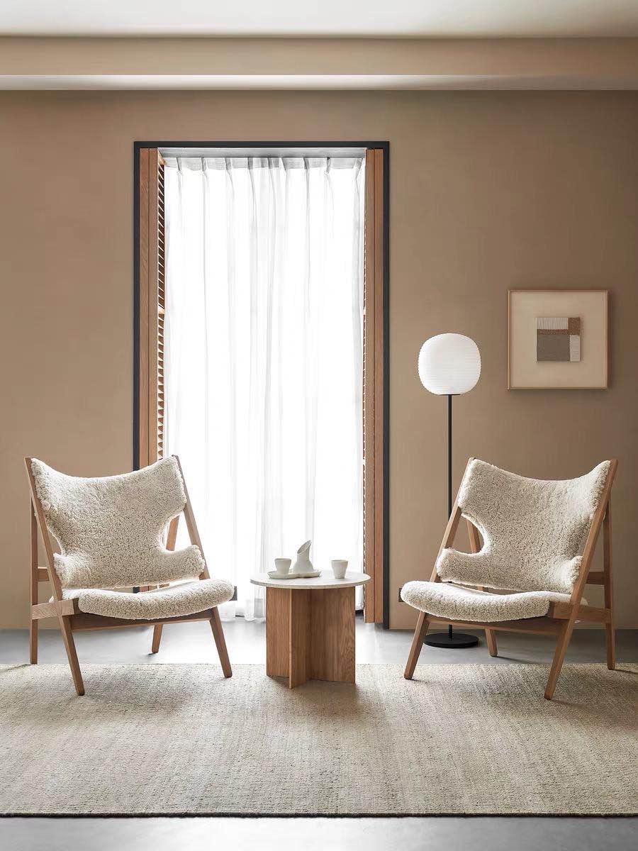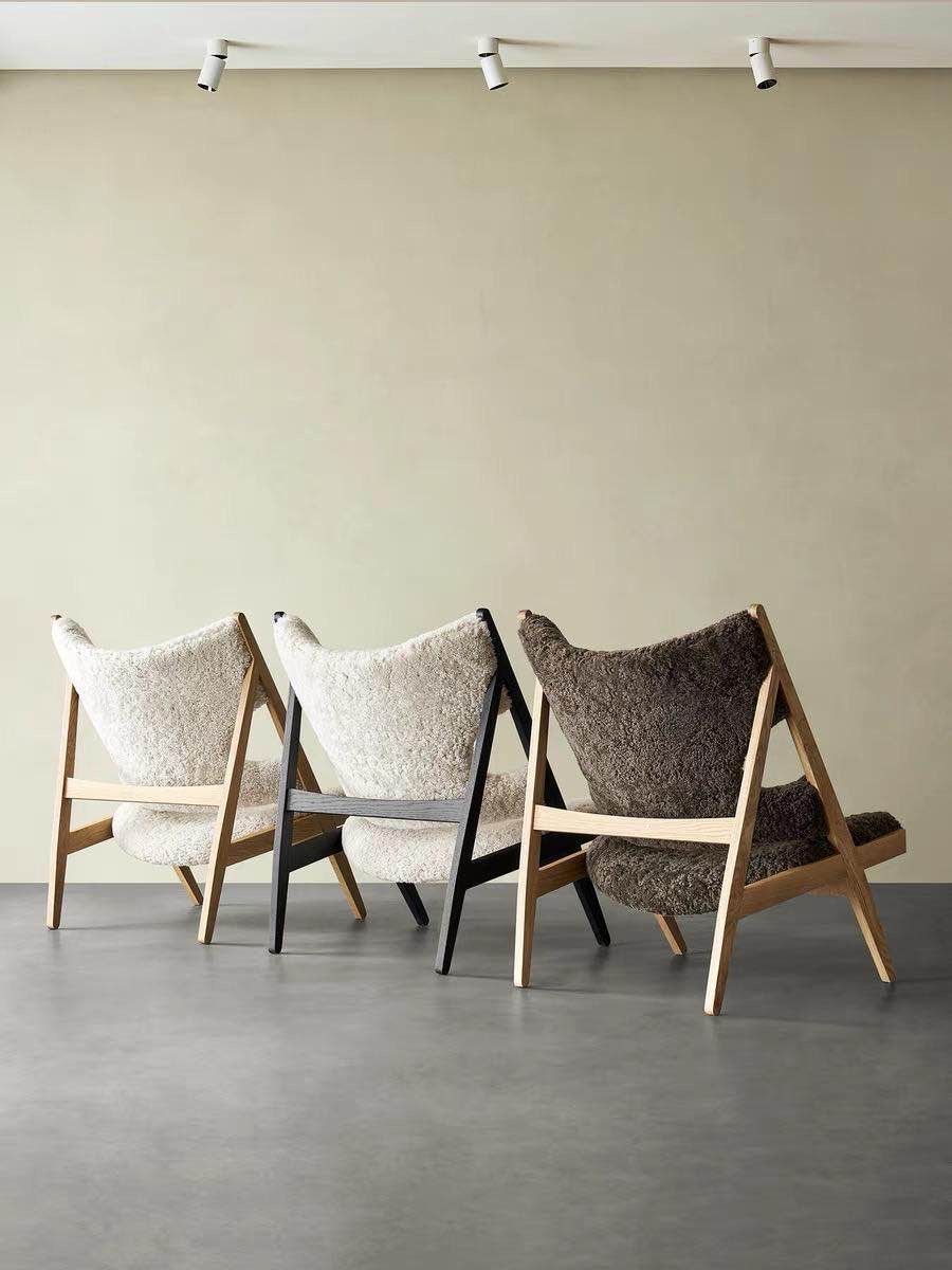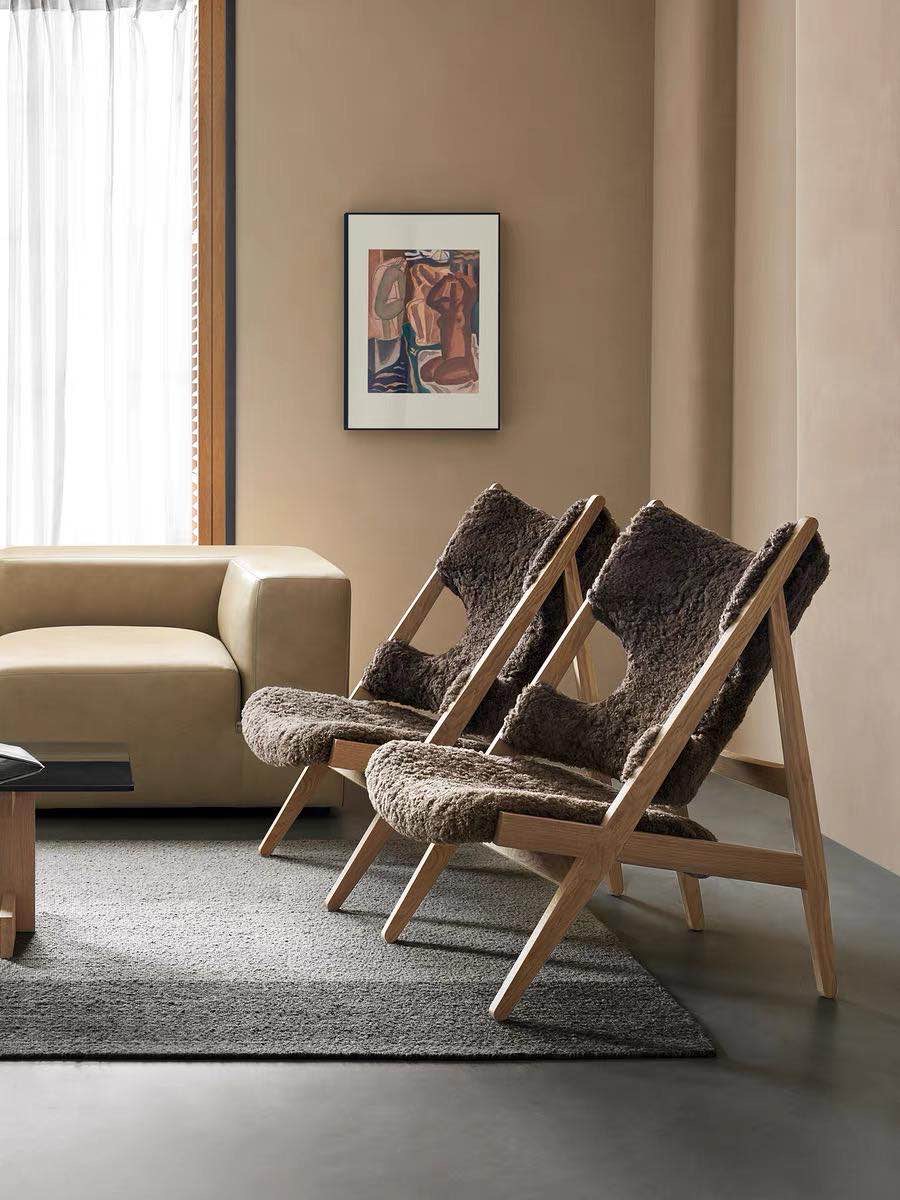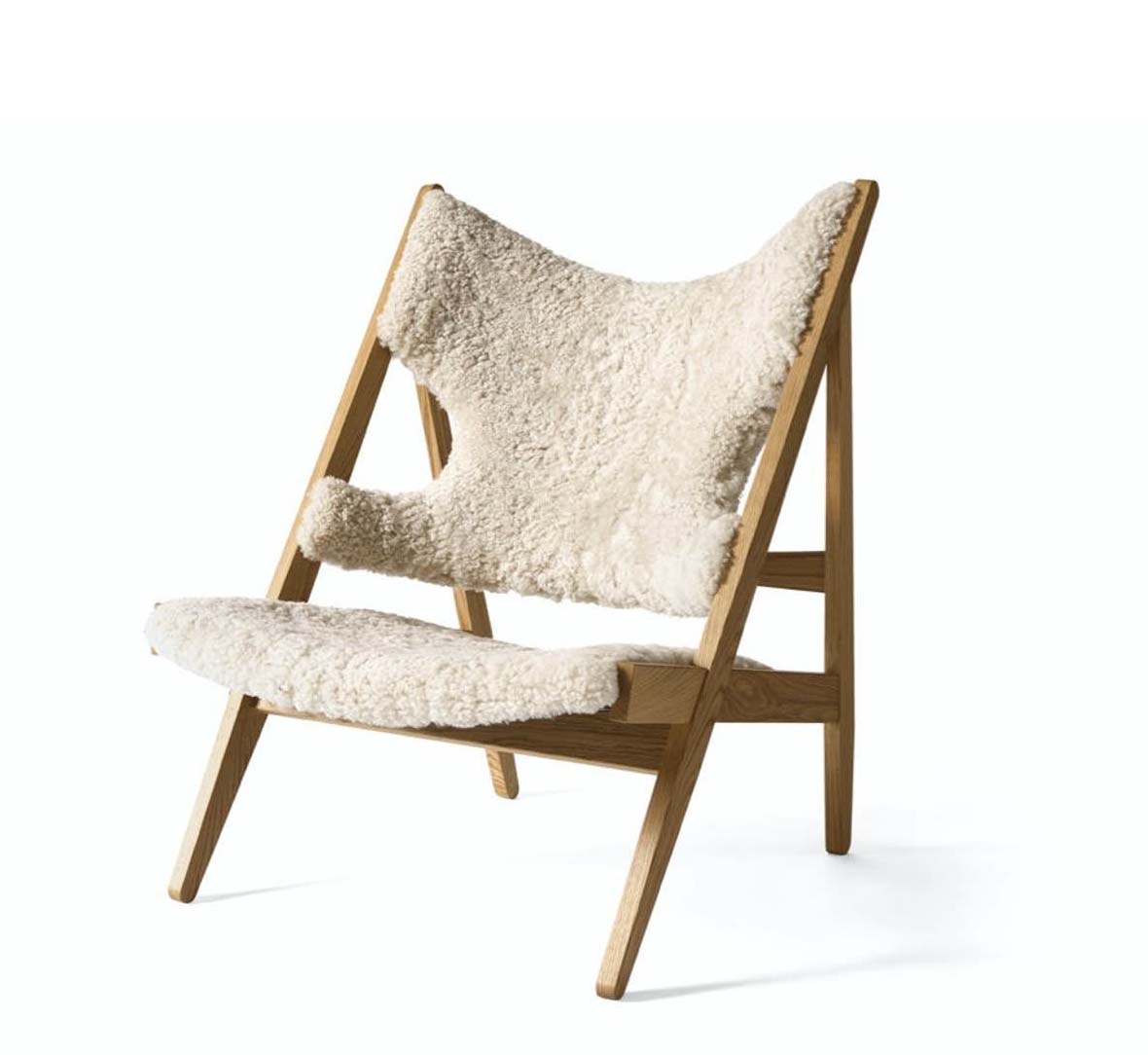 В этом сезоне культовое кресло Heldon возвращается — только на этот раз в новом уютном облике. Вырезы на локтях и изогнутая коническая спинка остались прежними, а сиденье и спинка стали покрыты нежнейшей овчиной обивкой — богатым натуральным материалом, покорившим скандинавский дизайн.