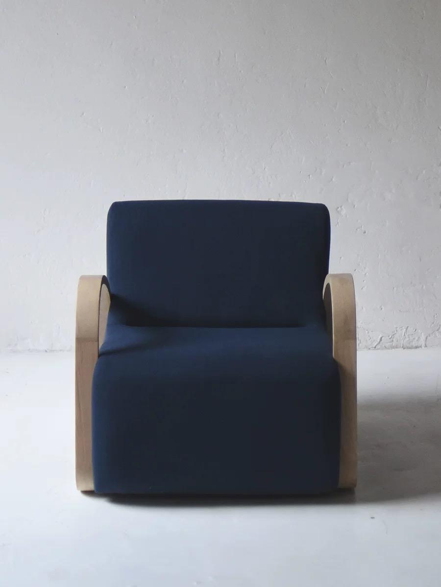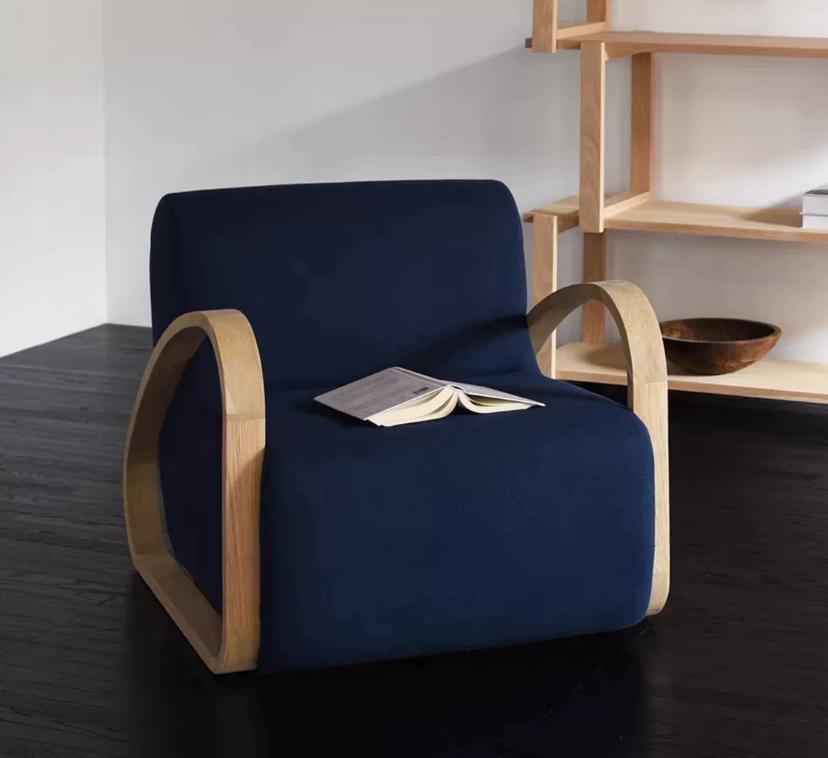 Сочетание мягкой обивки и натурального дерева создает контраст текстур, который привлекает внимание и придает креслу современный шик. Оно гармонично впишется в любой интерьер, будь то минималистичный современный или уютный скандинавский стиль. Благодаря своим габаритам и низкой посадке, это кресло не займёт много места, что делает его идеальным выбором для небольших пространств, таких как квартиры-студии и компактные гостиные.