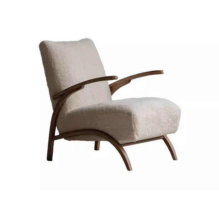 Сидение кресла также обито натуральной тканью из овечьей шерсти, что делает его мягким и приятным на ощупь.