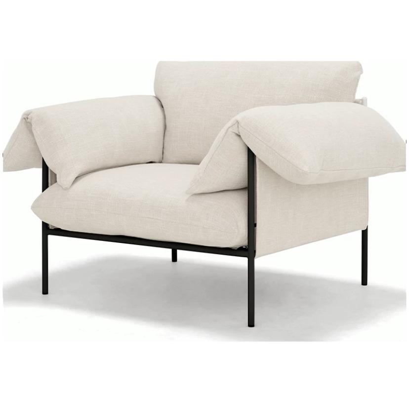 Дизайнерская мебель с черным металлическим каркасом и мягкими элементами нежного кремового цвета с приятной на ощупь текстурой обладает не только привлекательностью, но и функциональностью. Она станет идеальным местом для отдыха и релаксации, где вы сможете насладиться уютом и комфортом.