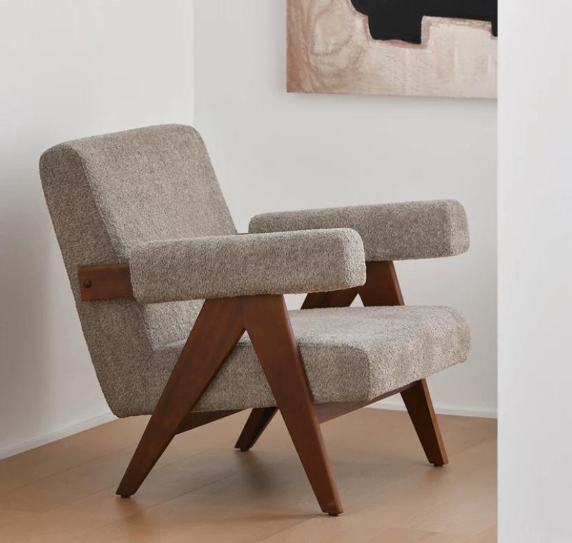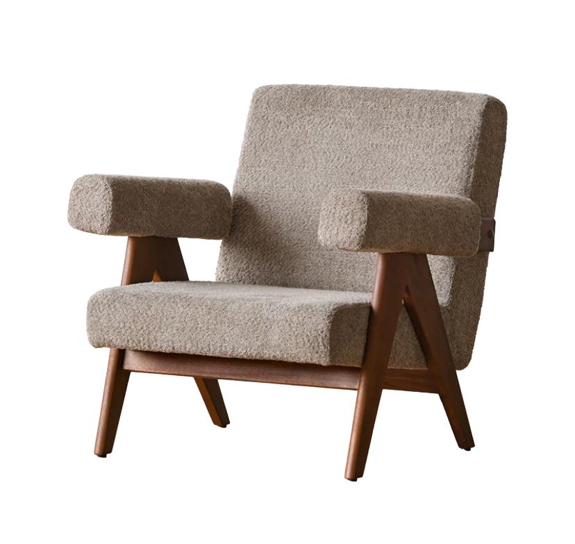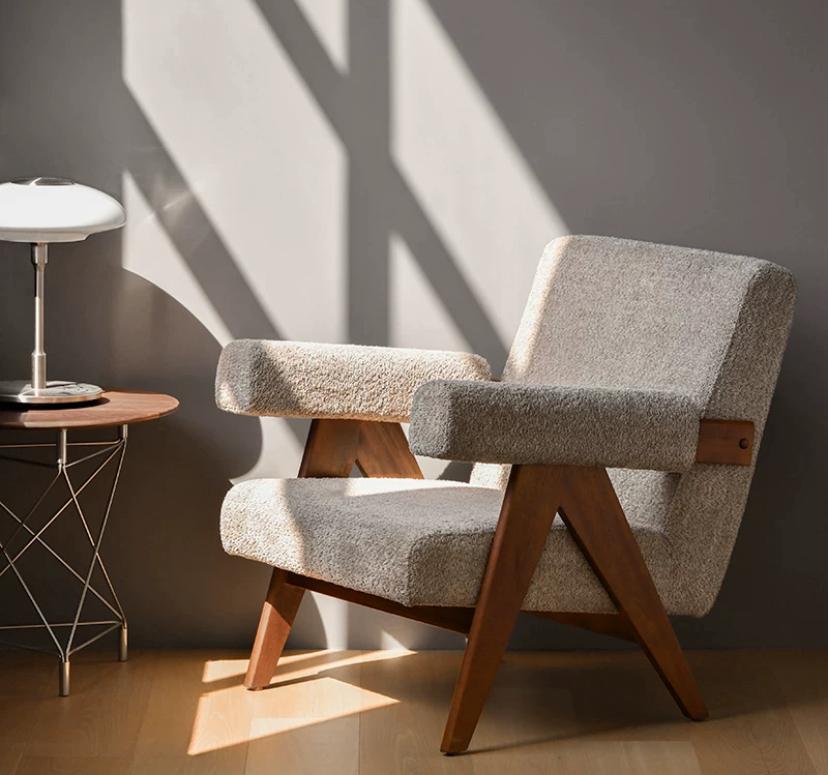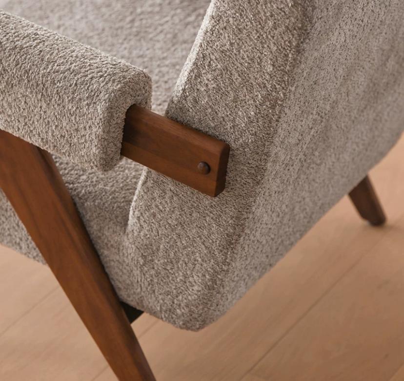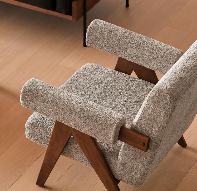Цветовая гамма обивки выдержана в спокойных серо-бежевых тонах, что делает кресло универсальным элементом интерьера. Эти оттенки прекрасно взаимодействуют с различными цветовыми решениями, создавая атмосферу гармонии и света. Светло-серые и бежевые оттенки способны трансформироваться в зависимости от освещения, то добавляя нотки тепла при закатных лучах солнца, то приобретая спокойную строгую элегантность в дневном свете.