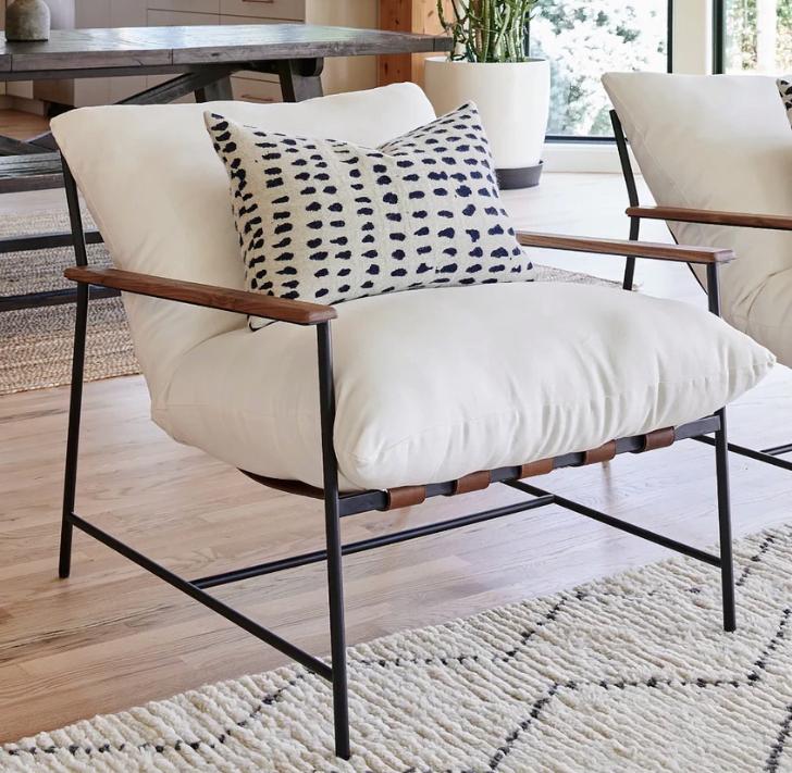 Верхнюю часть ремней украшает светлая подушка, обитая нежной и приятной тканью. Эта подушка придает дополнительный комфорт и мягкость креслу. Яркий контраст между черным каркасом, кожаными ремнями и светлой подушкой создает интересный визуальный эффект, который привлекает внимание и придает креслу особое очарование.
