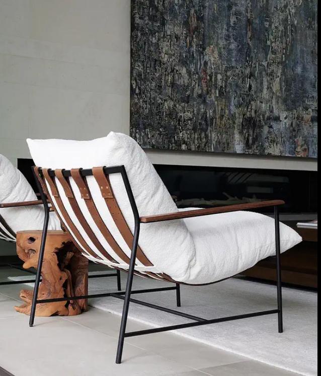 Особенностью кресла являются натянутые ремни из кожи, соединяющие спинку и сиденье. Это создает не только эстетически привлекательный вид, но и обеспечивает комфорт и поддержку для спины. Ремни из рыжей кожи повышают роскошный вид кресла и добавляют некую изысканность.