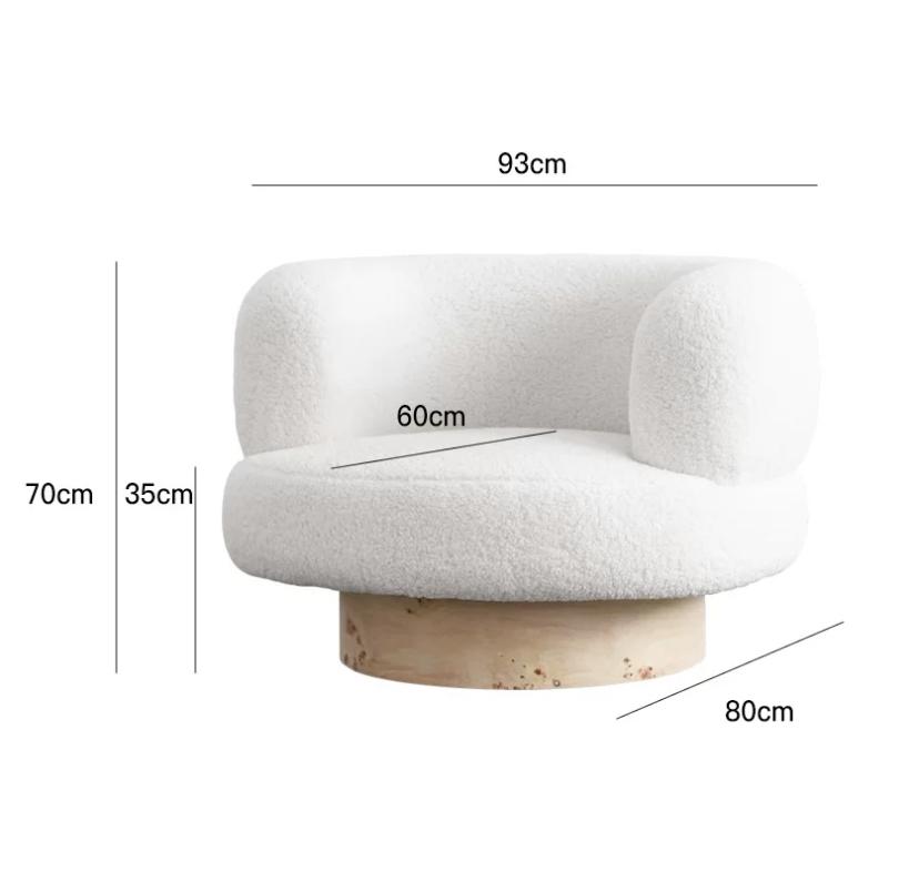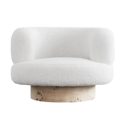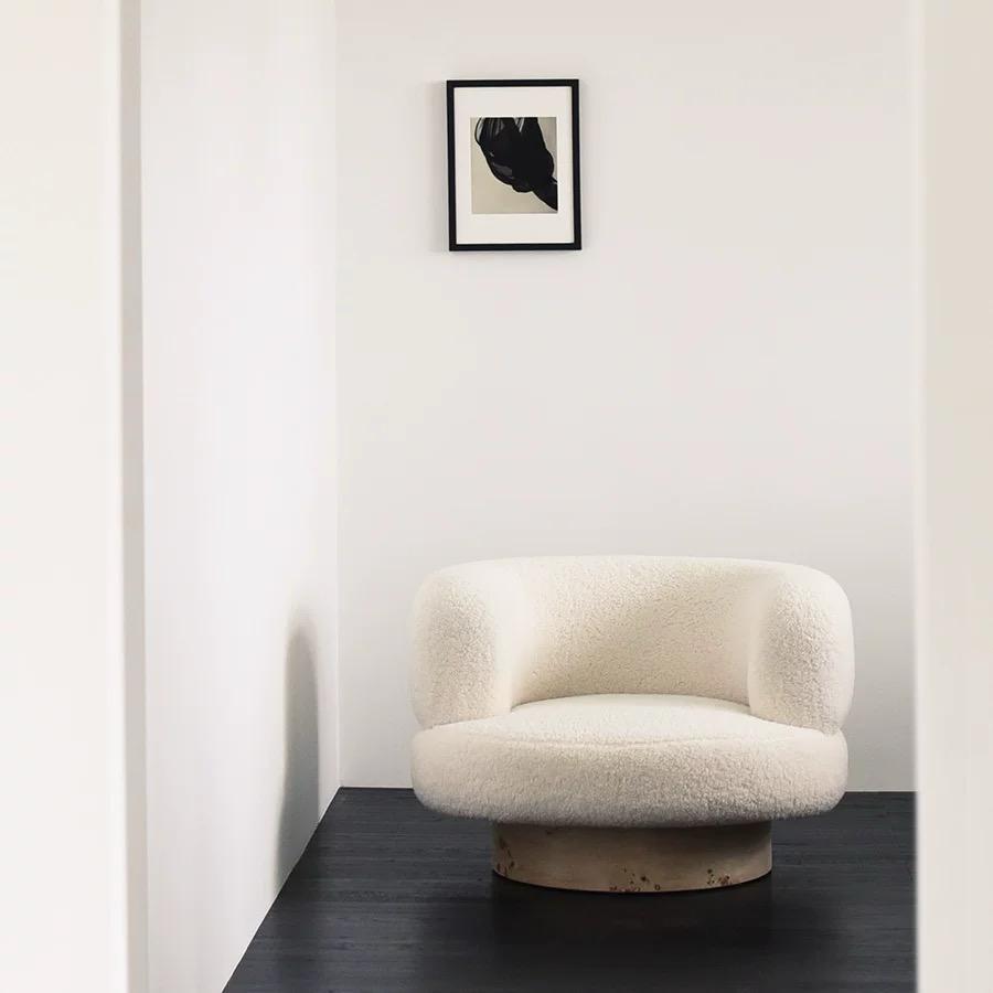 Округлые формы кресла плавно перетекают одна в другую, создавая визуальный эффект мягкости и комфорта. Эти обволакивающие линии делают кресло не только эстетически привлекательным, но и особенно уютным. Оно буквально приглашает присесть и расслабиться, окутав вас своим мягким объятием.
