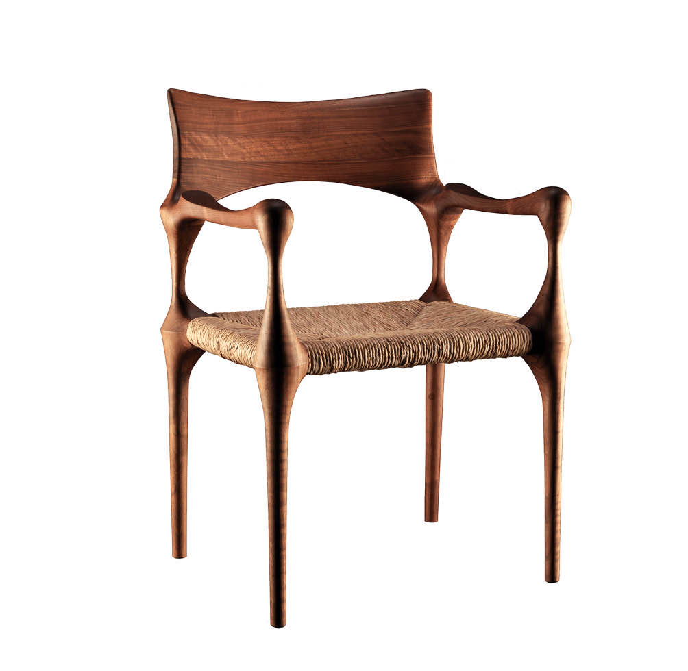 Стул обеденный из ротанга — образец изысканного мастерства, с искусно вырезанным каркасом из дерева и плетеным сиденьем из ротанга.