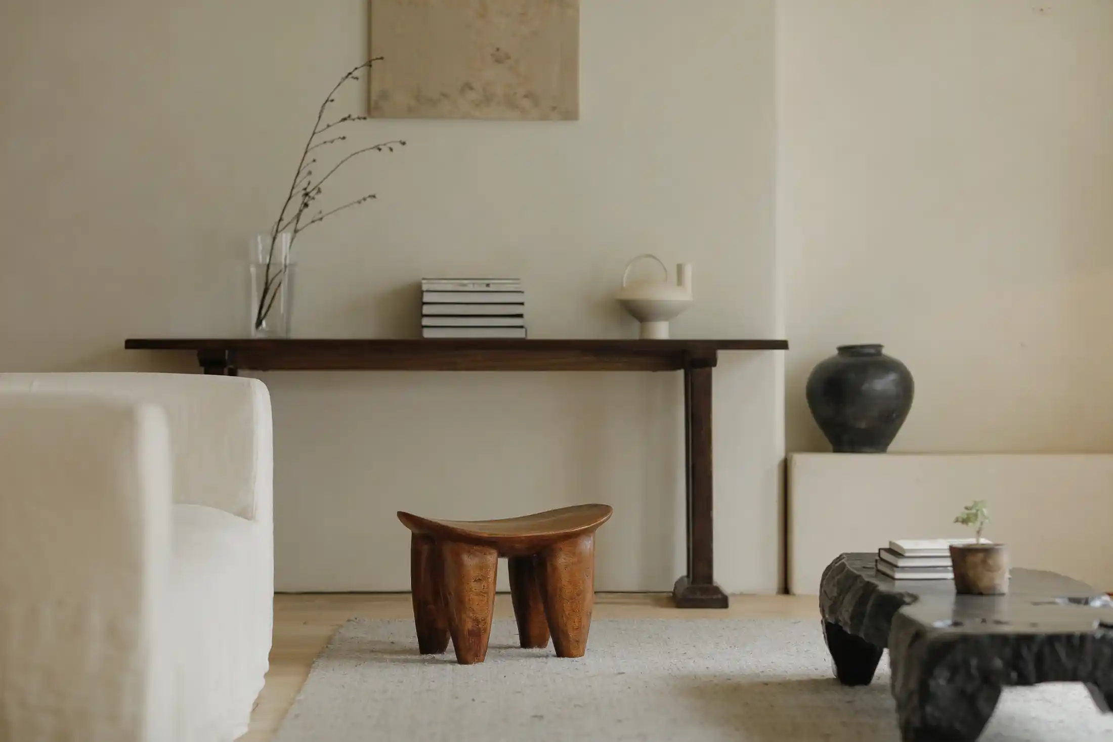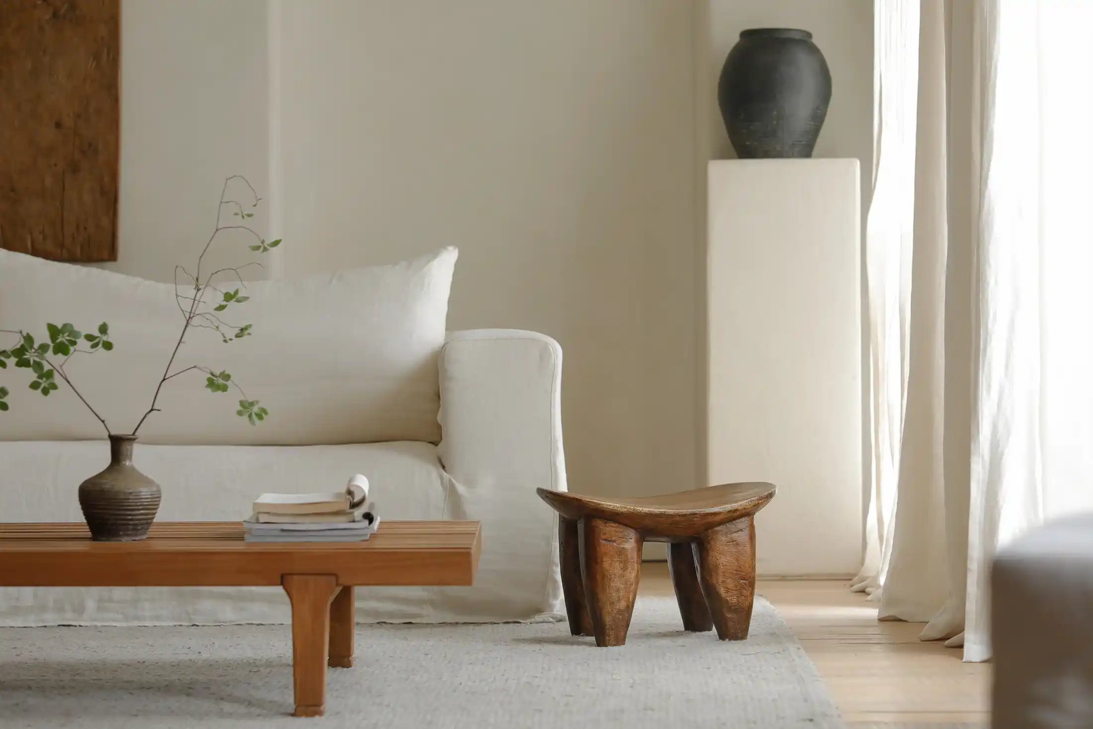 Дервянный Табурет Milk, имеет простую и минималистичную форму с небольшими дефектами на поверхности, такими как царапины и неровности. Он выполнен из  самании и имеет натуральный оттенок дерева, покрыт матовым лаком. Такой табурет будет отлично сочетаться с интерьером в стиле ваби-саби, который описывается как простой, но изысканный с атмосферой умиротворения и гармонии.