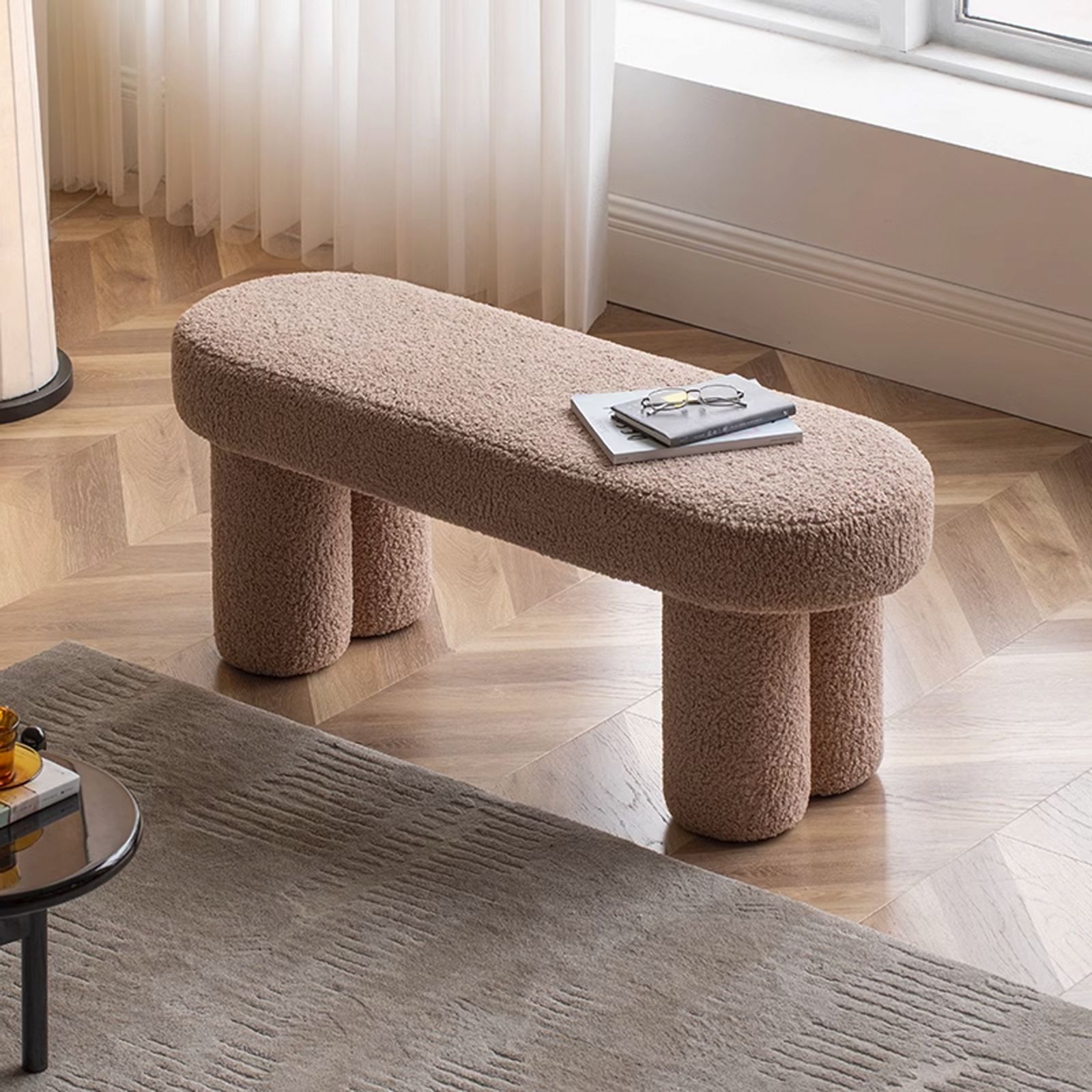 Скамья Carala от Hpdecor  имеет элегантное и современное исполнение. Она оснащена толстыми ножками, которые обеспечивают прочность и устойчивость, что придает им стильный и современный вид. Сиденье  и основание скамьи выполнено из мягкой обивки в кремовом цвете.
