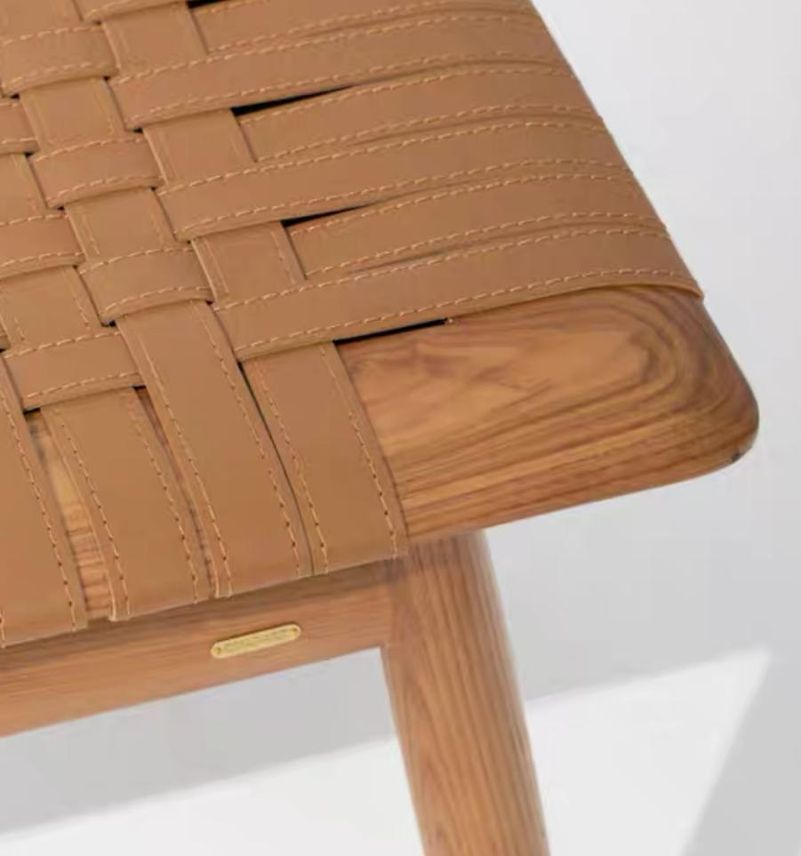 Главной особенностью скамьи является плетеная сидушка, выполненная из натуральной кожи. Кожа придает скамье изысканный и элегантный вид, подчеркивая ее уникальность и неповторимость. Плетеный узор создает интересный визуальный эффект, добавляя текстуру и объем. Кожаная сидушка мягко облегает тело, обеспечивая комфорт и удобство при сидении.