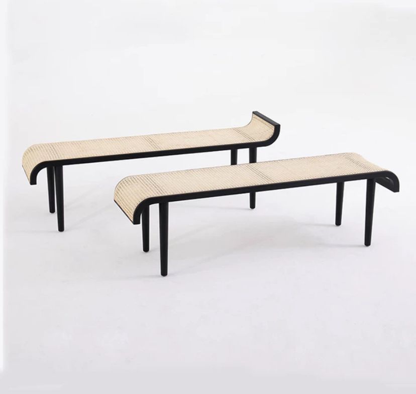 Сиденье скамьи выполнено из плетеного ротанга, который является натуральным материалом, полученным из веток ротангового пальма. Ротанг вручную плетется мастером, что придает ему уникальность и особый шарм. Плетеная структура обеспечивает комфортное сидение и атмосферу уюта.