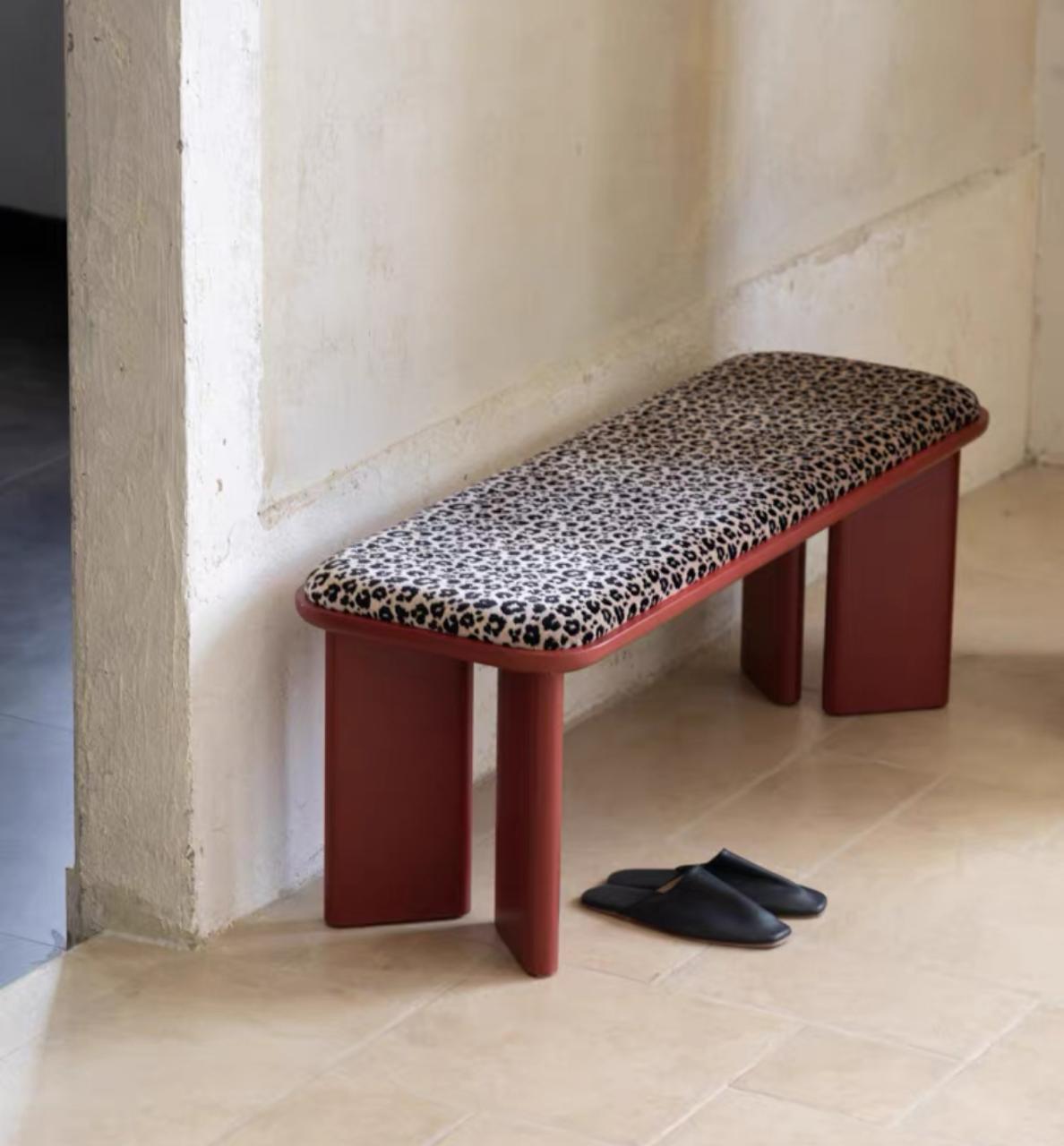 Основание скамьи выполнено из металла – прочного и надежного материала, который обеспечивает устойчивость и долговечность конструкции. Металлический каркас может быть выполнен в виде простых, геометрических форм, подчеркивая минималистичный стиль. Цвет металла обычно тёмный, графитовый или чёрный, чтобы создать контраст с мягким сиденьем и подчеркнуть его природную красоту. Холодный металл придаёт скамье современный, индустриальный вид.