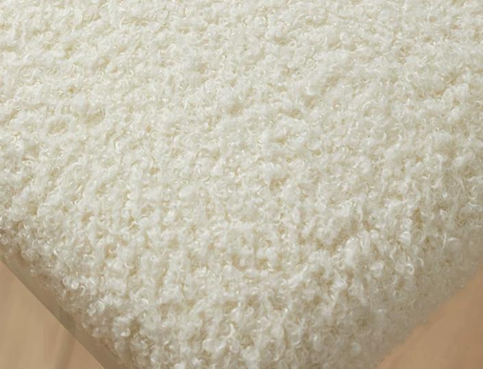 Сидение табурета мягкое и приятное на ощупь, выполненное в светлых тонах, которые добавляют ему нежности и утонченности. Такая палитра позволяет табурету легко вписываться в любой интерьер, привнося в него элемент современной элегантности. Благодаря тщательно подобранному материалу, сидение обеспечивает комфорт даже при длительном использовании, будь то у туалетного столика или в прихожей.