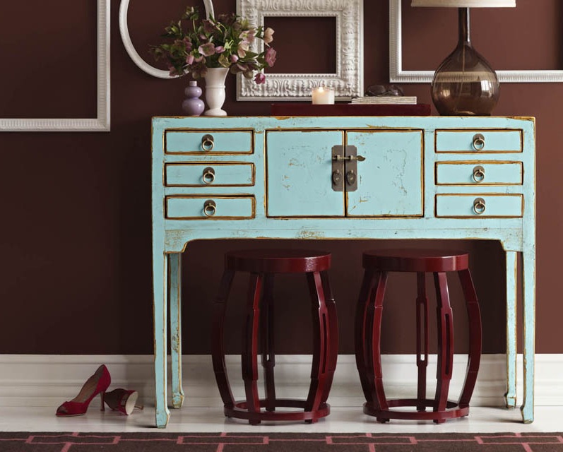 Очаровательный консольный стол в китайском стиле, словно пропитанный духом старины и экзотики. Его искусственные потертости придают интерьеру особый винтажный шарм и уют, привлекает таинственностью и неповторимым национальным колоритом. Такая довольно узкая консоль станет просто незаменима около лестницы и в длинном коридоре. Выполненная из дерева ручной работы наша прелестная консоль Ming Style превратит незаполненное пространство в комфортный и красивый уголок. Ее можно декорировать фешенебельными светильниками, вазами, статуэтками, картинами и фотографиями на свой вкус, который может меняться в зависимости от настроения.