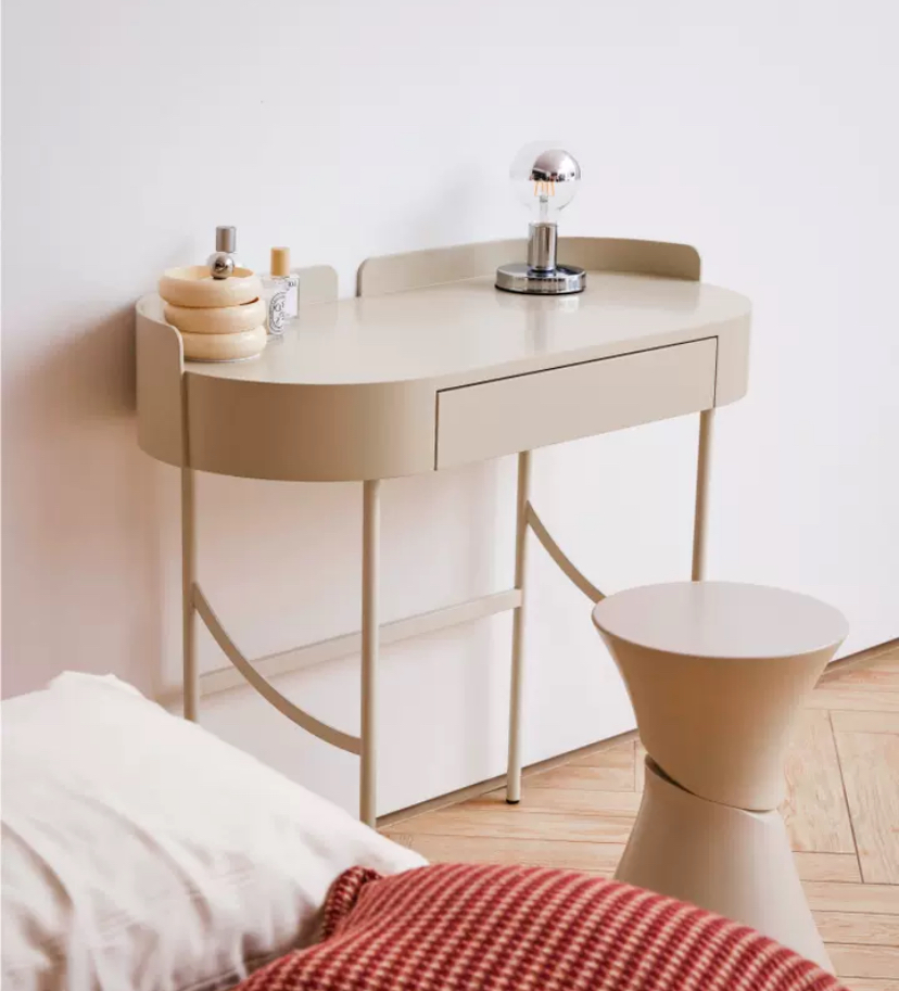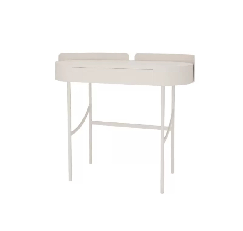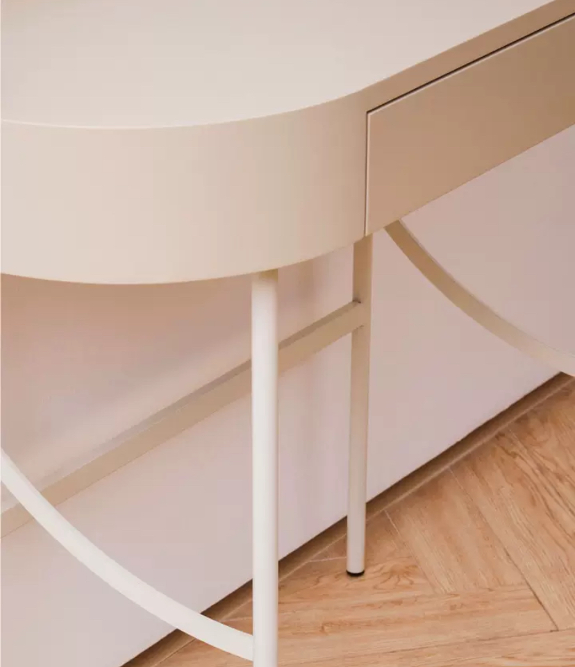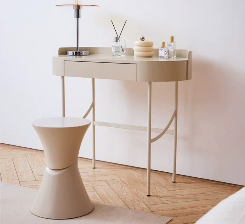 Туалетный столик Spumonti -милый туалетный столик приятного бежевого цвета выражает изящество и шарм. Он стоит на тонких, изящных металлических ножках, которые великолепно сочетаются с цветом столешницы. Нежные оттенки столика мягко подчеркивают его женственность и элегантность.