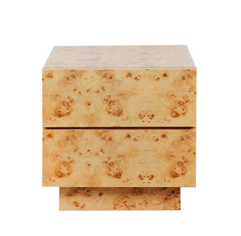 Геометрически выверенная квадратная форма тумбы придает ей современный и лаконичный вид. Прямые линии и четкие углы подчеркивают элегантность дизайна и делают тумбу визуально легкой, не перегружая пространство. Эта форма идеально подходит для небольших спален, где важен каждый сантиметр свободного места.