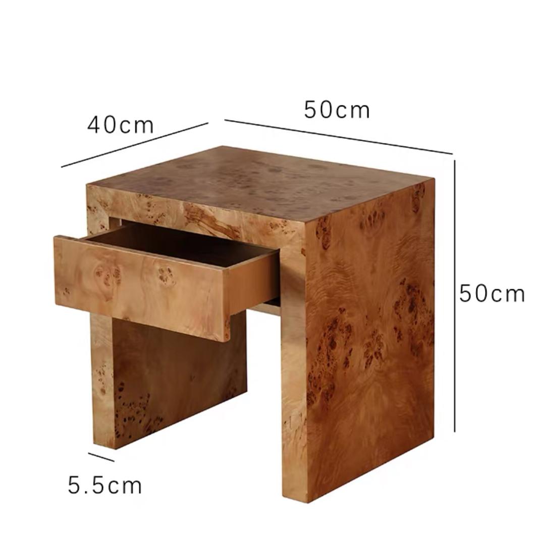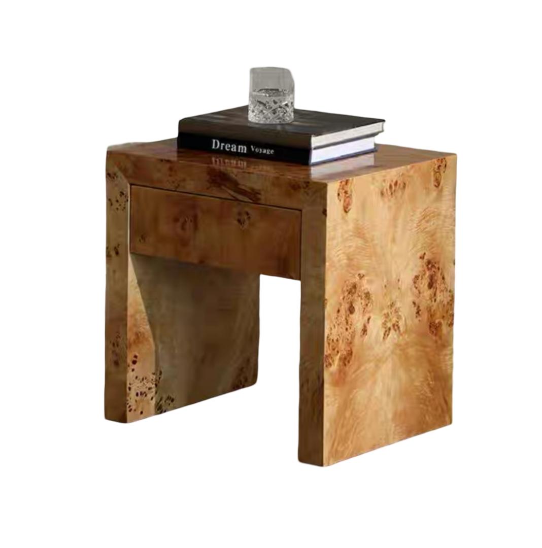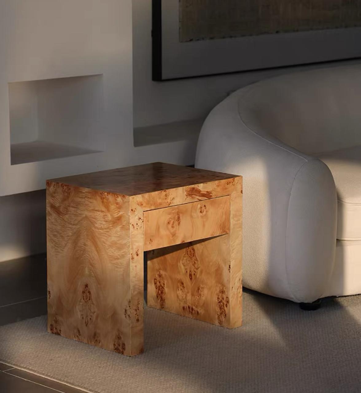 Эта прикроватная тумба излучает тепло и уют, словно согретая лучами солнца. Выполненная из шпона лиственницы, она притягивает взгляд своей естественной красотой и богатой текстурой дерева, напоминающей янтарь. Это не просто функциональный предмет мебели, а элегантное украшение спальни, создающее атмосферу гармонии и спокойствия.