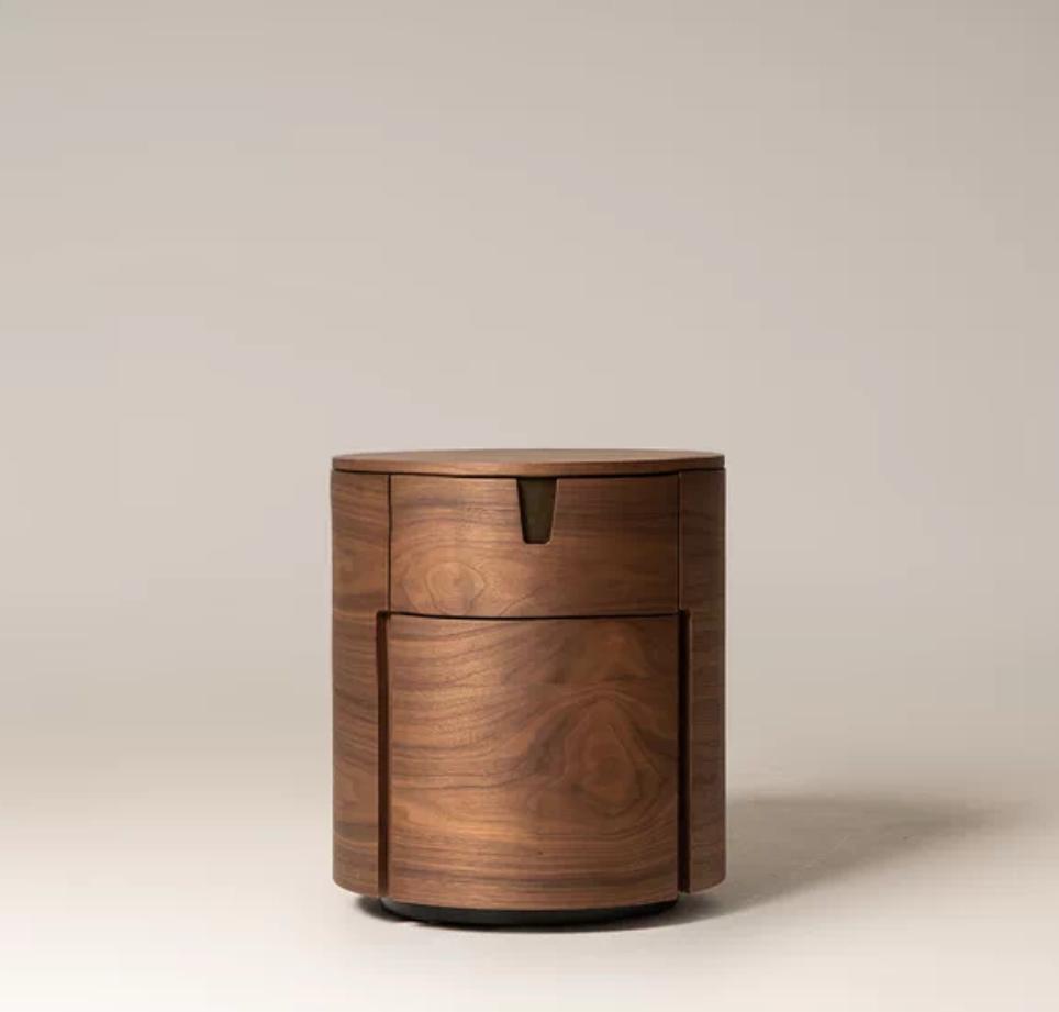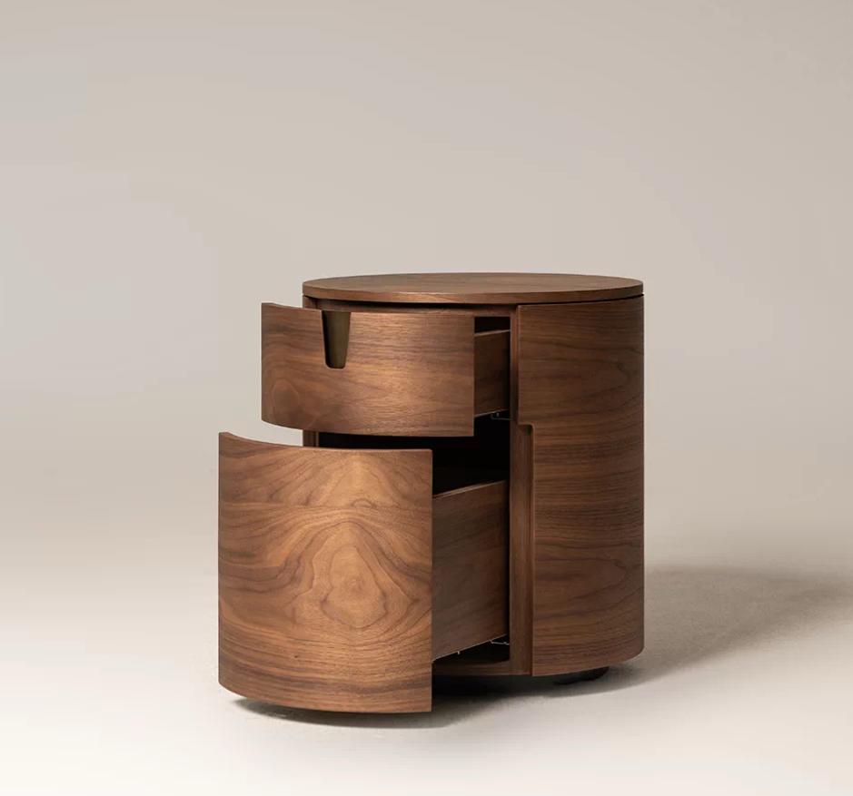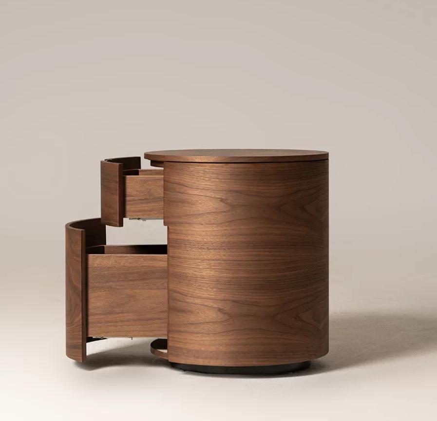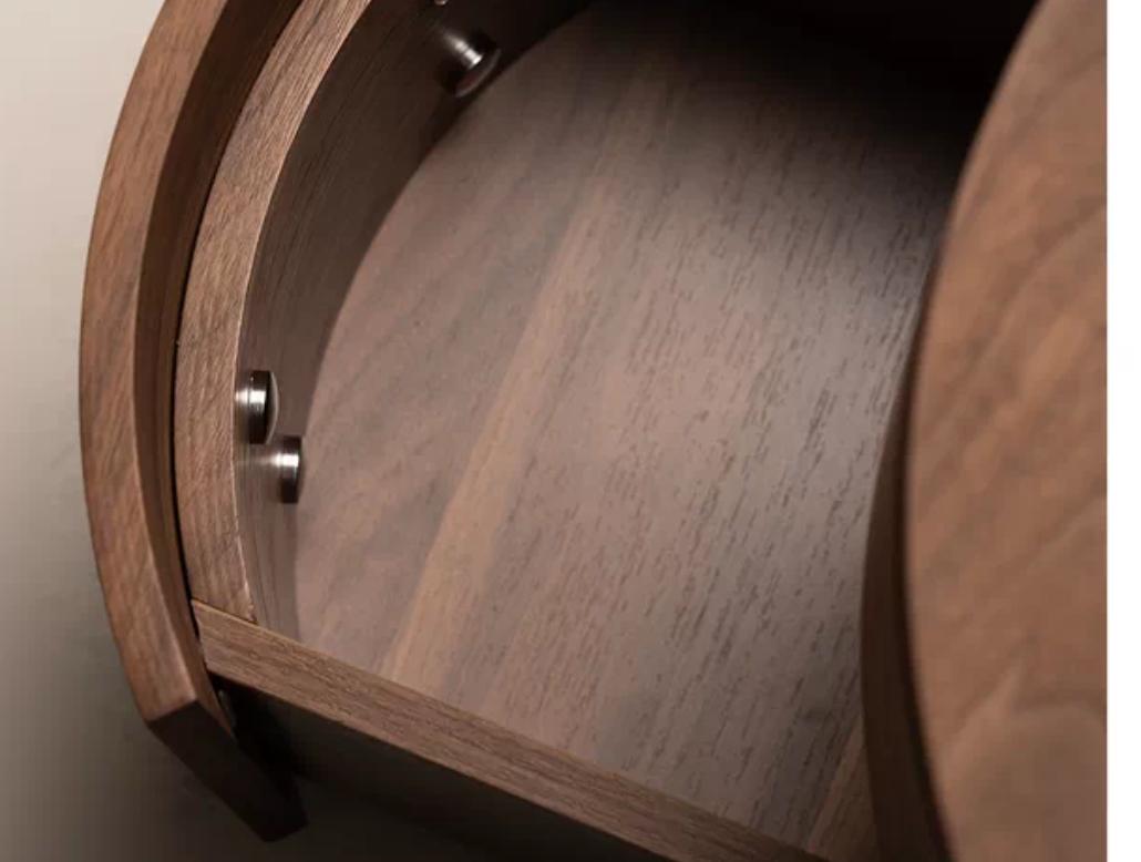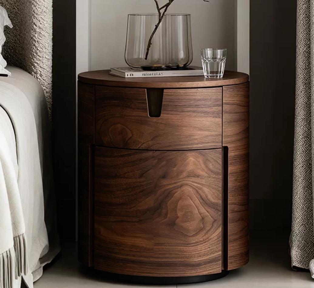 Цилиндрическая форма тумбы придает ей легкость и воздушность, несмотря на кажущуюся массивность. Этот силуэт не перегружает пространство, а, наоборот, добавляет ему динамики и современности. Плавные линии тумбы создают ощущение гармонии и покоя, что особенно важно для спальни – места, предназначенного для отдыха и восстановления сил.