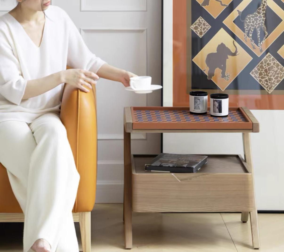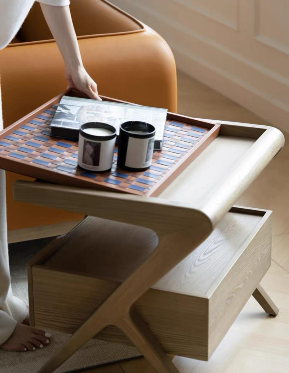 Под подносом располагается выдвижной ящик, предоставляющий дополнительное место для хранения. В ящике можно разместить книги, журналы, кремы, маски для сна и другие мелочи, которые вы хотите иметь под рукой перед сном. Выдвижной ящик оснащен качественной фурнитурой, обеспечивающей плавное и бесшумное открывание и закрывание.