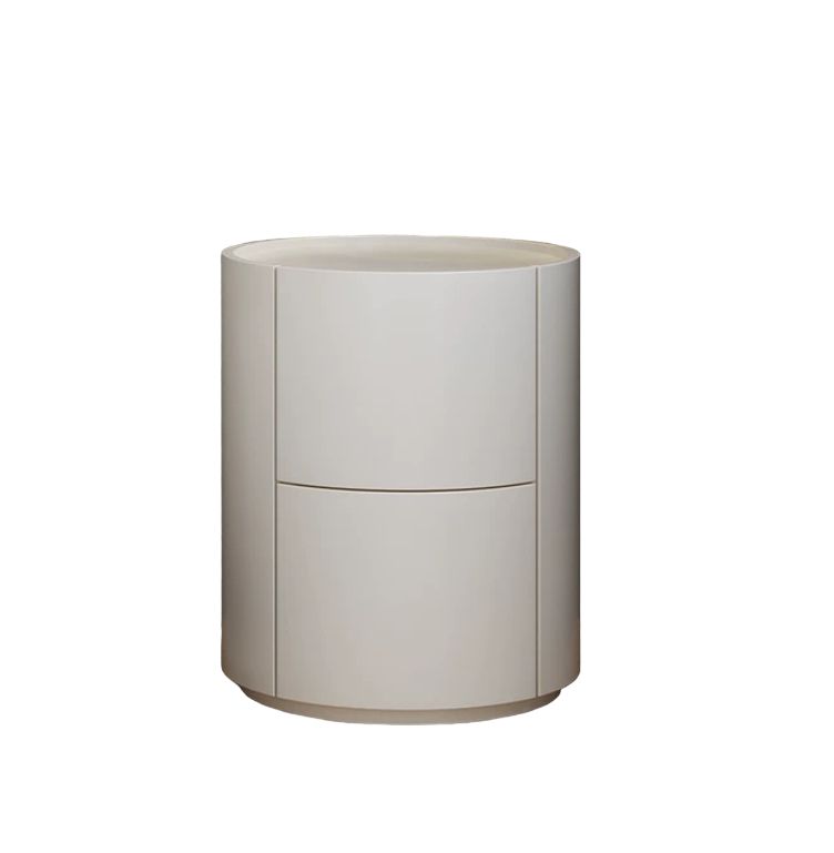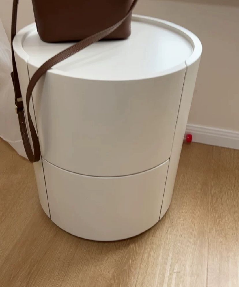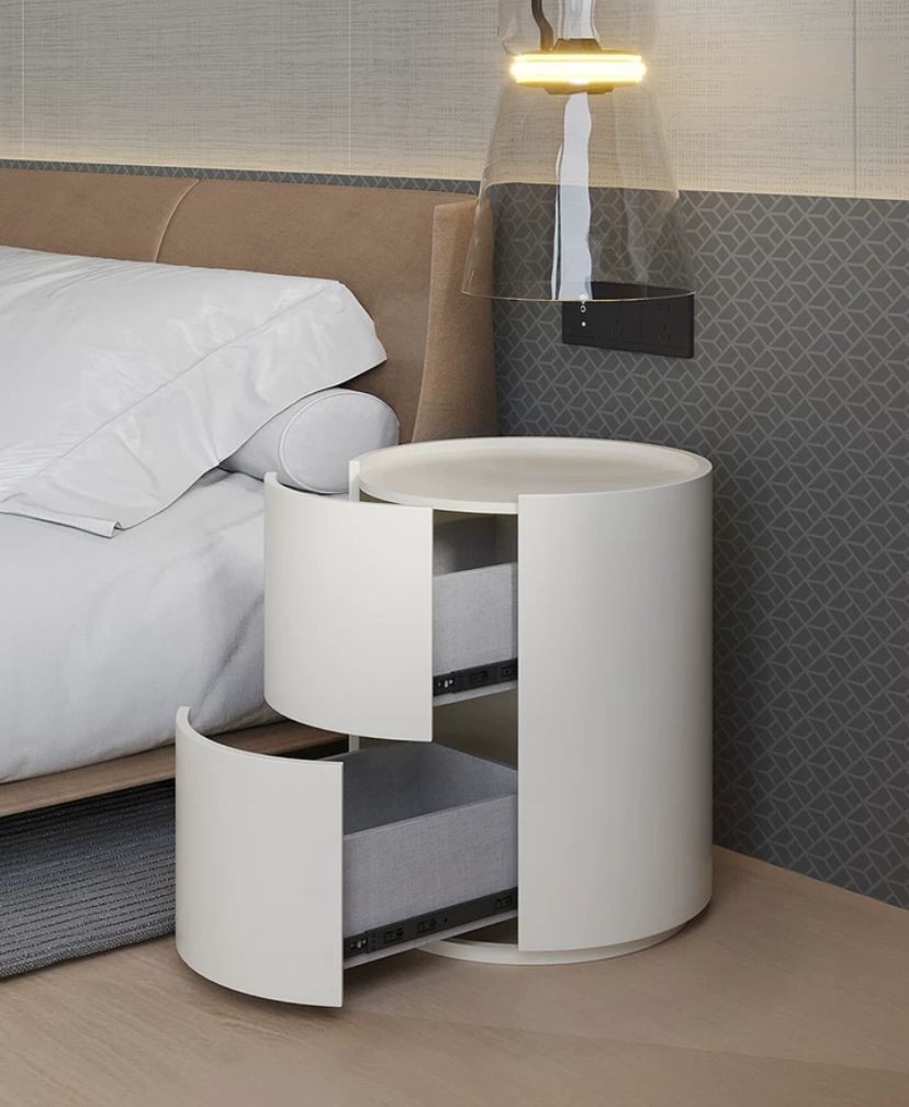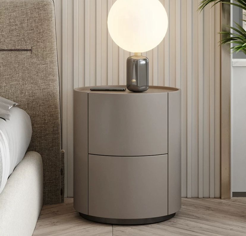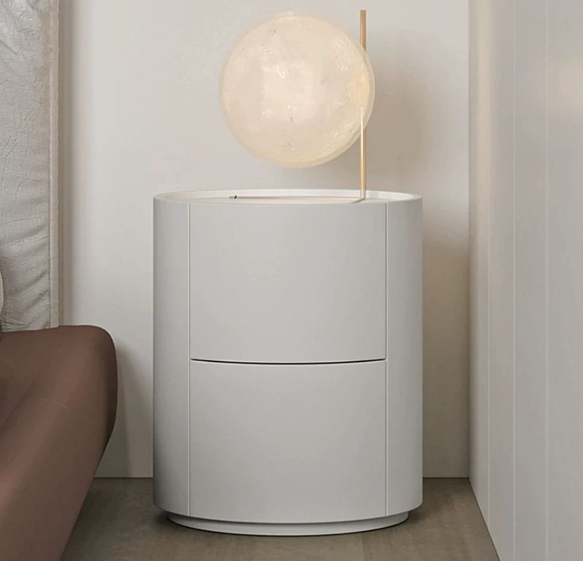 Форма тумбы цилиндрическая, что является необычным и стильным решением. Она создает ощущение гармонии и плавности, а также отлично сочетается с другими элементами интерьера спальни.