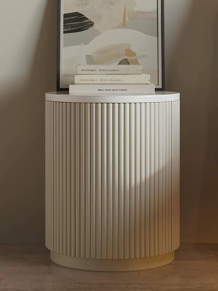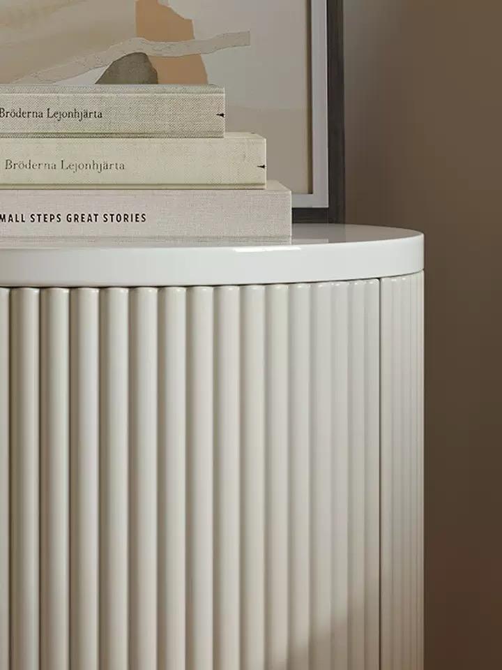 Особое внимание уделено фасадам тумбы, которые обладают эффектной рифленой структурой. Это придает изделию уникальный и стильный вид, делая его отличным выбором для тех, кто ценит изысканность и оригинальность.