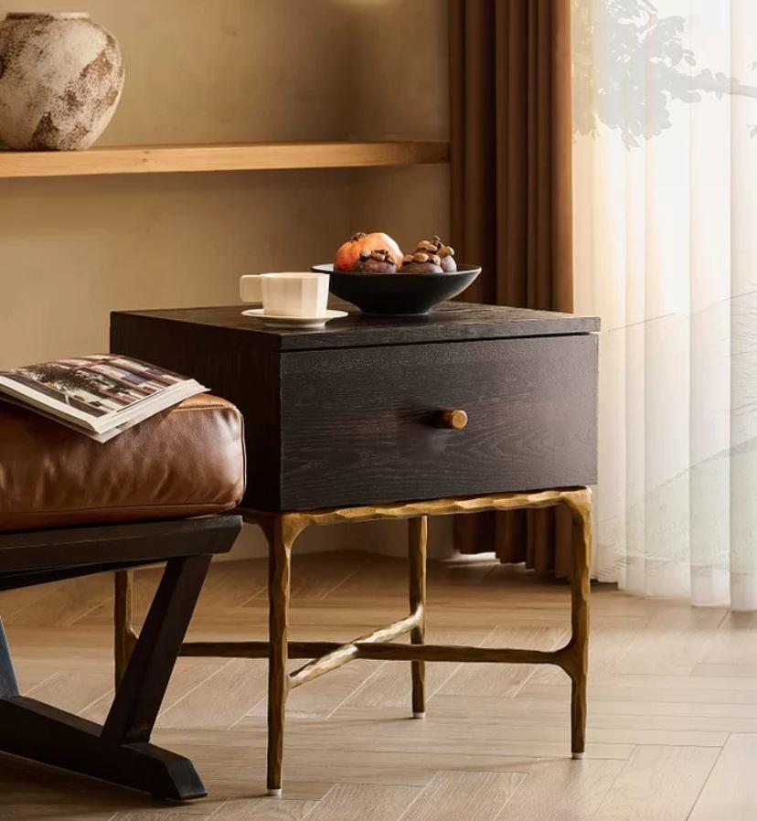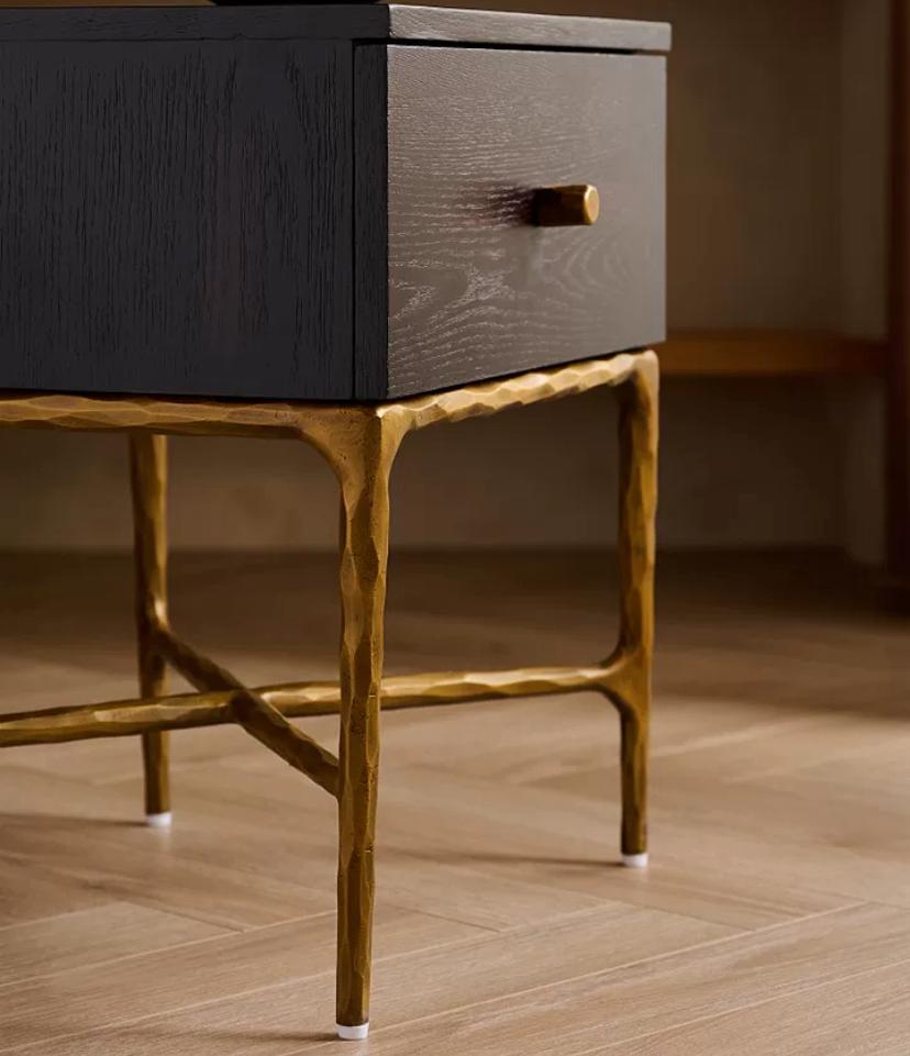 Прикроватная тумба Pompi роскошный винтаж в вашем доме! выполнена из ясеня и является изысканным предметом мебели. Она обладает особенным основанием, состоящим из металлических ножек золотого цвета, которые были созданы вручную и придают ей элегантный вид.