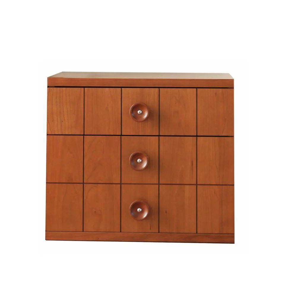 Она имеет три выдвижных ящика, которые обеспечивают удобное хранение различных предметов. Конструкция тумбы выполнена с применением высококачественной американской вишни, которая придает ей теплый и приятный оттенок дерева.