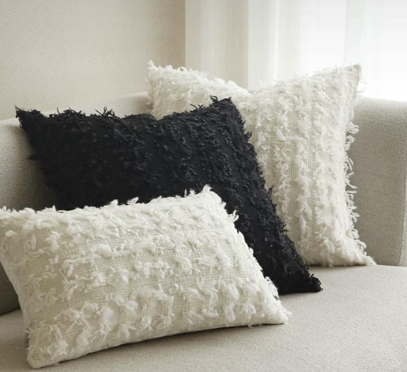 Особое внимание следует обратить на уникальное декорирование поверхности наволочки. Оно представляет собой нежные узоры из ниток(бахромы) из бархатистых вкраплений, выполненных с помощью вышивки или сшитых из прочных материалов.