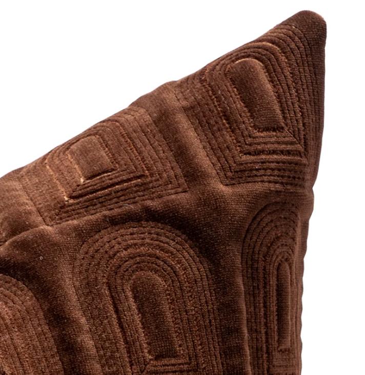 Но, разумеется, сама подушка — это лишь половина красоты. Ее чехол выполнен из мягкого, нежного коричневого велюра, который нежно прикасается к коже и создает ощущение уюта и комфорта. Важно отметить, что на этом превосходном материале раскинулся роскошный орнамент, вышитый в ручную в виде окошек в замке.