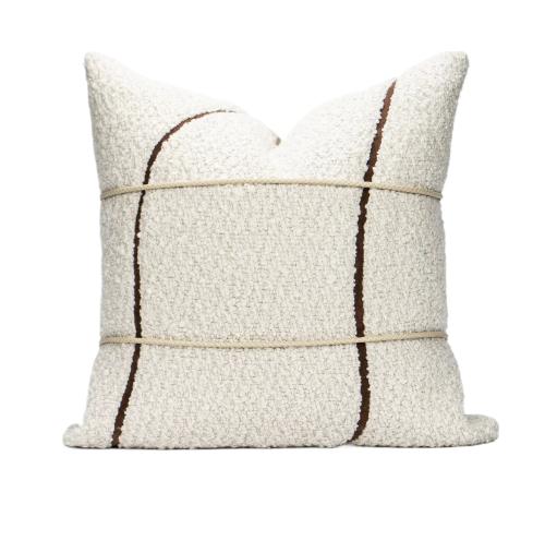 Подушка Zolini — декоративная подушка, размером 50*50 см, приятного кремового цвета, создана с использованием высокопрочной ткани, которая обладает красивой текстурой. Ее уникальность и элегантность подчеркивают коричневые линии, изысканно переплетающиеся по всей поверхности наволочки. Этот концепт придаёт подушке неповторимый шарм и позволяет ей гармонично вписаться во многие современные интерьерные стили.
