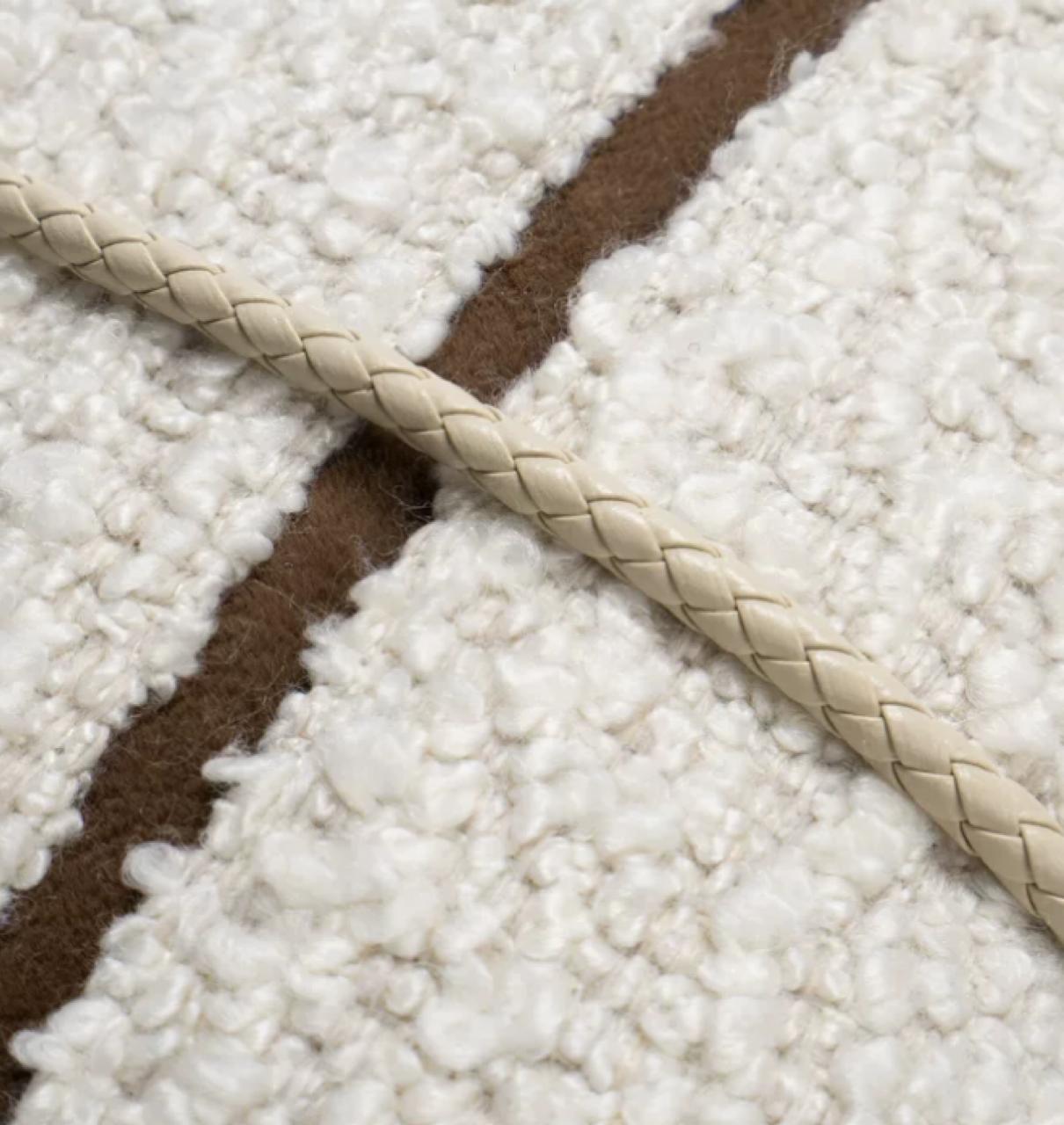 Дизайнерский акцент в виде двух кожаных бежевых шнурков добавляет особого шарма и ощущение роскоши этой подушке. Кожа приятна на ощупь и придает изделию особую теплоту, подчеркивая ручную работу и внимание к мельчайшим деталям.