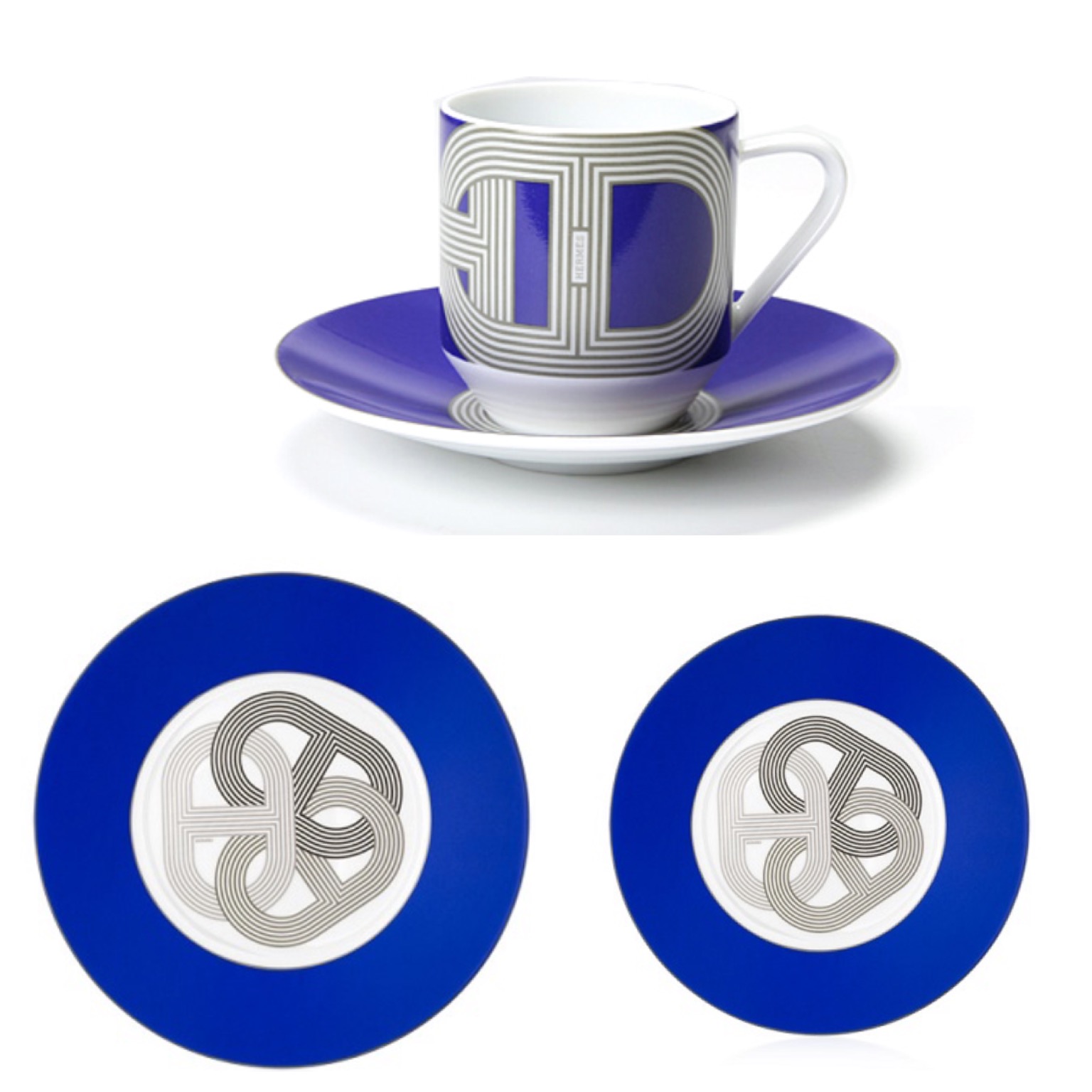 В этот стильный сервиз входит: две тарелки, блюдце и чашка. Гонки, спортивные автомобили и здоровый образ жизни вдохновили Hermes на создание коллекции столовой посуды Rallye 24. Идея создания коллекции Rallye 24 принадлежит дизайнеру компании Hermes Бенуа-Пьеру Эмери, который презентовал свое видение посуды на спортивную тему. Глянцевая поверхность тарелок в шести цветах аналогична блестящему кузову быстрого автомобиля. Овал, круг или квадрат – идеальная форма для легкой фарфоровой посуды, похожей на детали культовых суперкаров. А графический рисунок из трех скрещенных элементов напоминает гоночный трек для победного ралли.